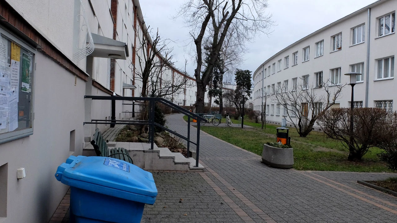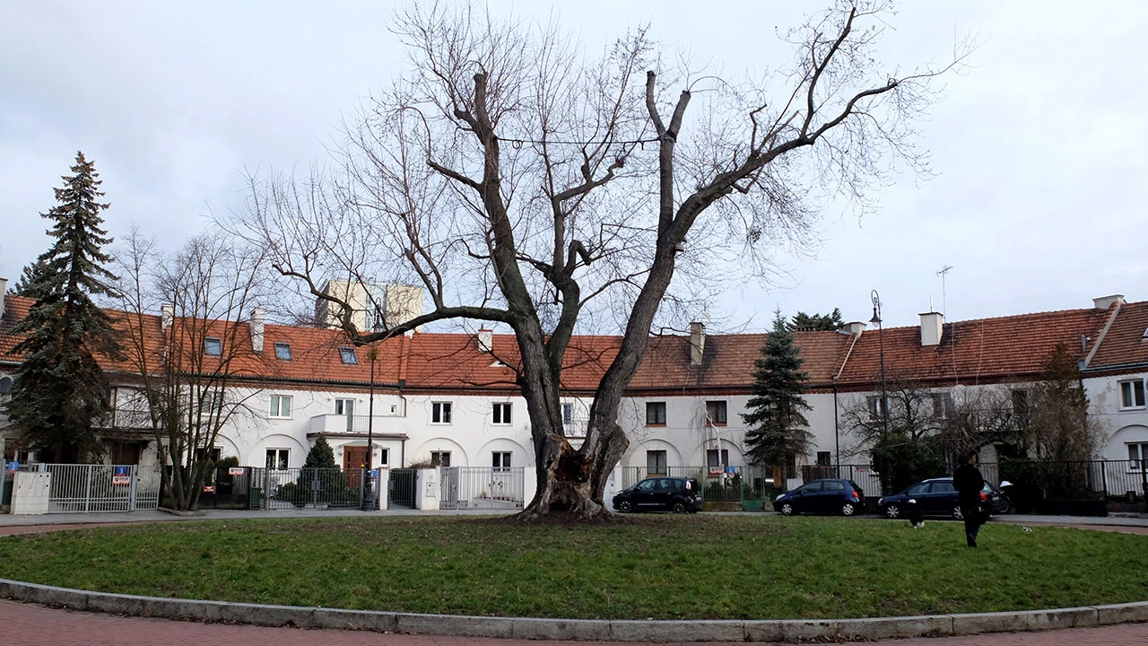 Wjeżdżamy na teren Warszawskiej Spółdzielni Mieszkaniowej. WSM to nie tylko osiedle, to także projekt socjalny. Oprócz budowy mieszkań (pierwsze powstały w 1927 roku), założyciele spółdzielni dbali o infrastrukturę społeczną. Na terenie WSM istniało między innymi przedszkole, szkoła podstawowa i gimnazjum, bursa dla młodych robotników, kino.