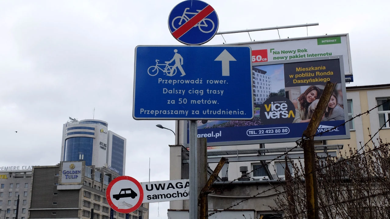Okopową i Towarową dojeżdżamy do Kolejowej. Tutaj jest jeden z warszawskich teleportów, czyli miejsce, gdzie kończy się droga dla rowerów i teraz rowerkowcu zsiadaj i pchaj swoją maszynę. To przypomina nam pewną panią wiceprezydent Warszawy z czasów Lecha Kaczyńskiego, gdy ta otwierając przy Rondzie Zesłańców Syberyjskich drogę dla rowerów kończącą się schodami (do dzisiaj zresztą tak jest), mówiła do rowerzystów: jesteście młodzi, możecie 10 metrów znieść rower. Zupełnie nie myśląc, że na rowerach jeżdżą dzieci, osoby starsze czy z niepełnosprawnościami. Zresztą już wtedy dało się spotkać na stołecznych ulicach rowerzystki i rowerzystów z przyczepkami rowerowymi wypełnionymi dziećmi.