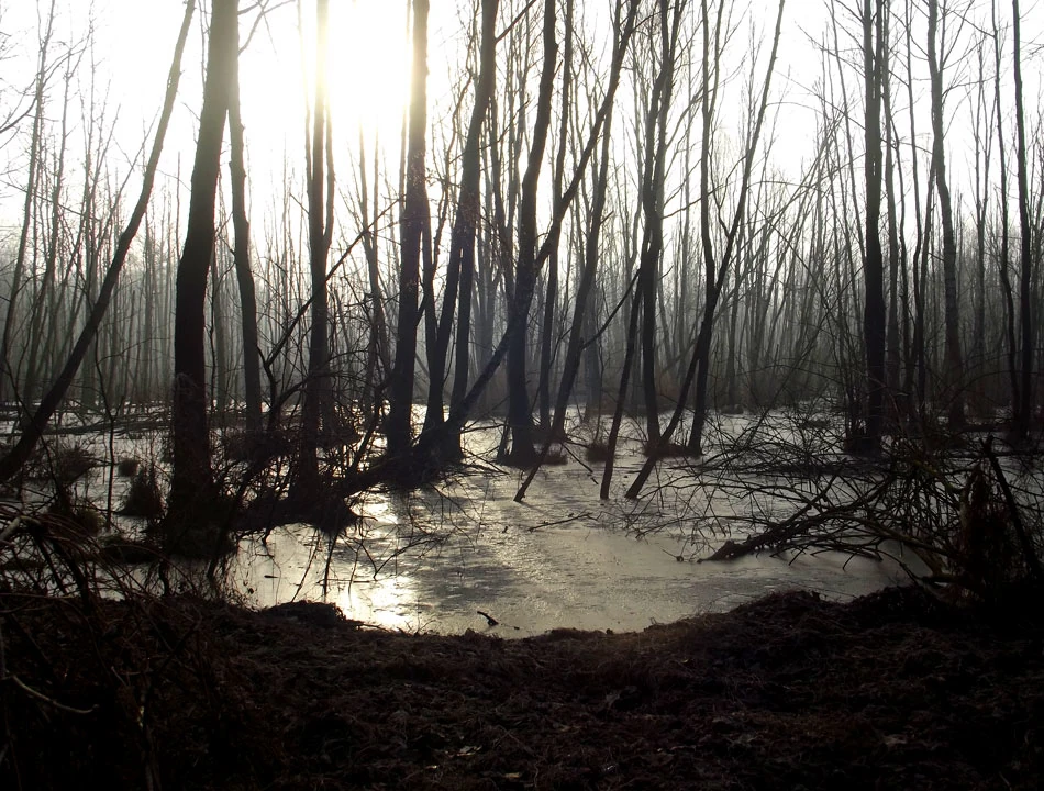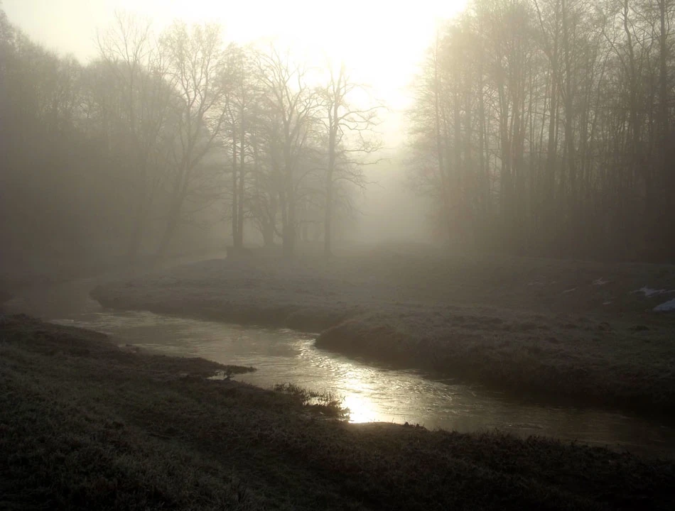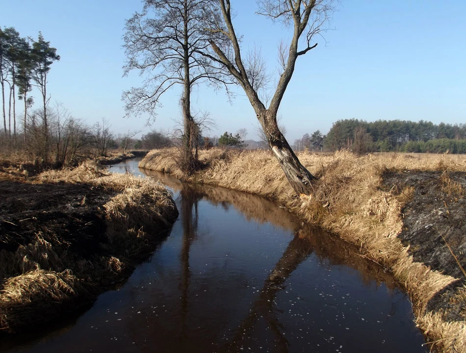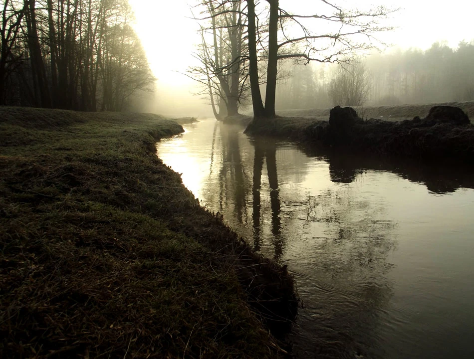 To już nie jest przymrozek, to całkiem porządny mróz. Piotrkowi grabieją palce. Gdzieś w okolicach Izabelina musi się zatrzymać i poświęcić parę minut na rozgrzewanie przemarzniętych dłoni. Mgła ani myśli opadać, a aura objawia swój chłodny urok. Szczególnie rzeczka Czarna zachwyca nas swoimi ołowianymi odmętami.