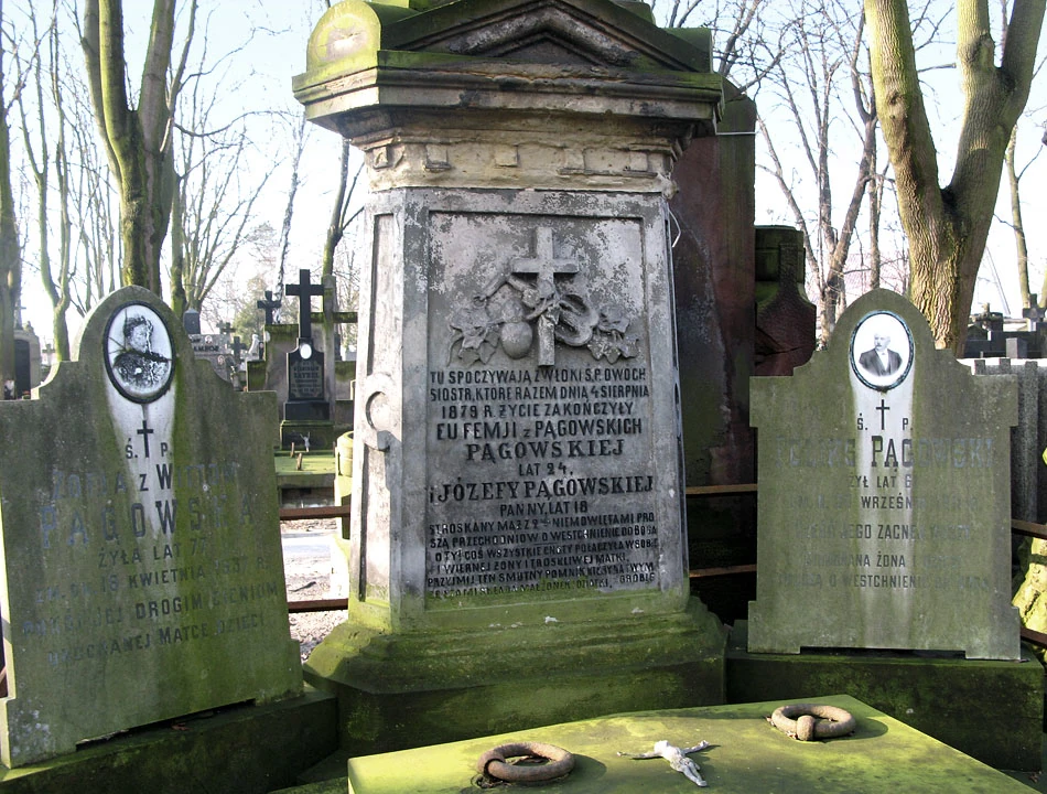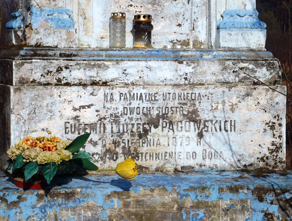 Natrafiwszy na pamiątkową kapliczkę poświęconą XIX wiecznej tragedii, długo spekulowaliśmy, co mogło się wydarzyć. Snuliśmy hipotezy: może siostry Pągowskie były bardzo małe i wpadły do rzeczki, a może były większe, ale w 1879 była powódź i zabrała dziewczynki? Piotrkowi nie dawało to spokoju i zaczął poszukiwać informacji. W sukurs przyszedł Internet i strona http://www.nekrologi-baza.pl/. Dzięki uprzejmości właścicieli portalu dowiedzieliśmy się, że siostry Pągowskie były dorosłe; jedna z nich była mamą dwójki dzieci. Mogiła sióstr znajduje się na Powązkach w kwaterze 57. My nadal jednak nie wiemy, co wydarzyło się w tamten sierpniowy dzień nad rzeką Cienką.