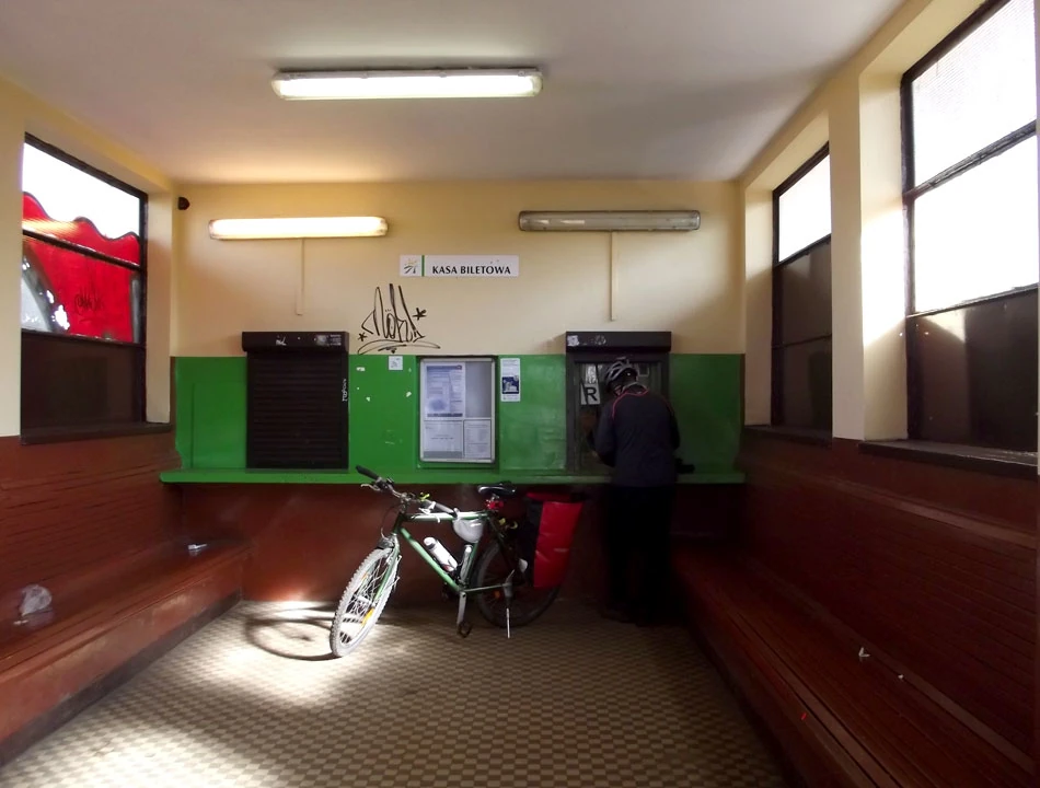 Wołomin wita nas krwawą ofertą. Kupujemy na stacji bilety do domu i za chwilę jesteśmy w pociągu jadącym do Warszawy Wileńskiej.