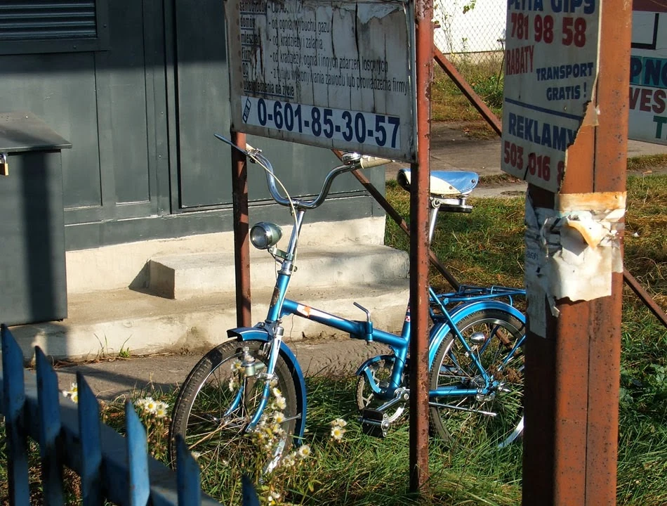 Trzymając się torów, momentami jadąc ścieżką pośród drzew, dojeżdżamy do Zielonki. Przy stacji stoi zaparkowany cudowny rower. Nie wiemy, czy ktoś go tak świetnie konserwuje, czy znalazł niedawno w piwnicy, ale rower jest z innej epoki.