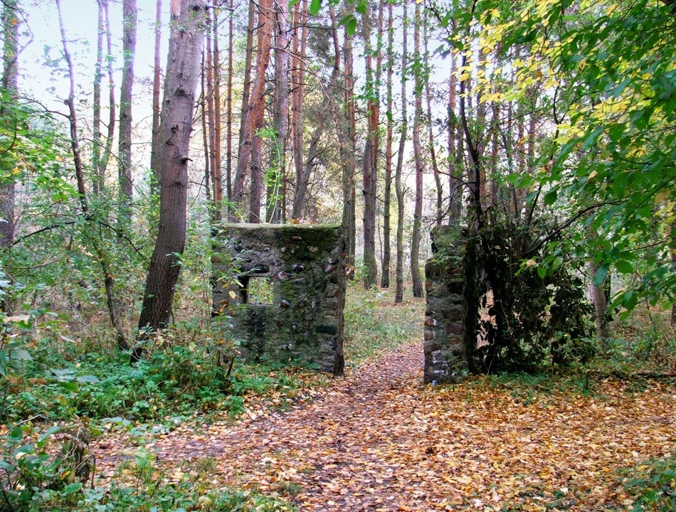 Wjeżdżamy w las pod Kobyłką i natrafiamy na bramę w środku lasu i murek, który jest chyba obrysem sporej posiadłości. Dalej napotykamy zadbany kiedyś staw ze schodkami prowadzącymi nad lustro wody. Nie natrafiamy jednak na żaden ślad domu. Trochę to wszystko dziwne. Marcin nagle słyszy głosy, ale okazuje się, że to wiatr niesie fragmenty kazania z pobliskiego kościoła.