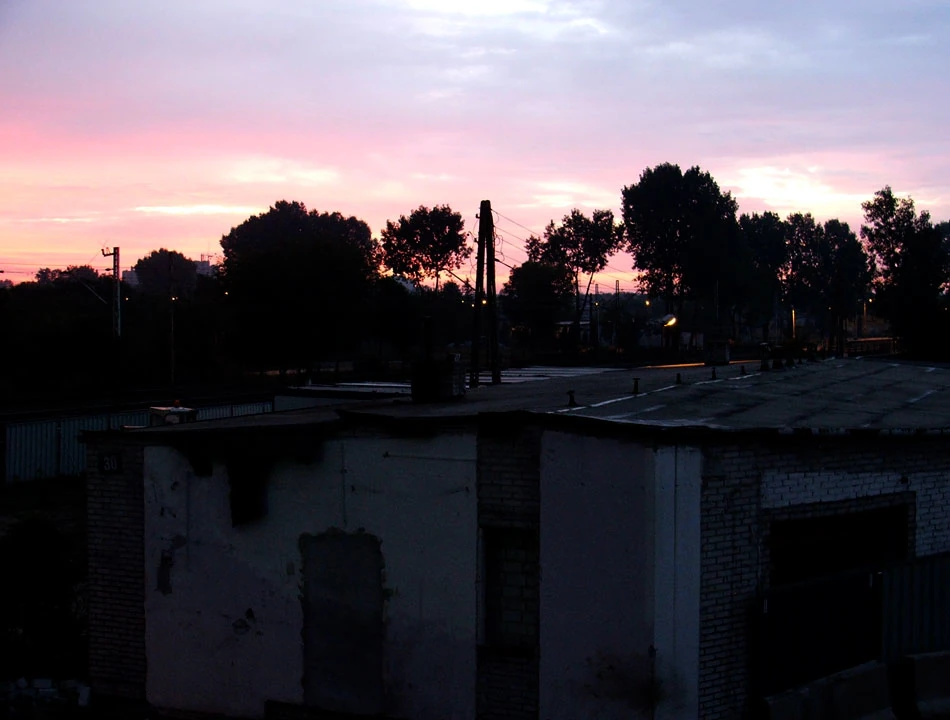 Grochów całkiem wyludniony. Jedziemy jak paniska środkiem Grochowskiej i na wysokości Marsa skręcamy w stronę torów linii Otwockiej. Korkową przejeżdżamy przez tory. Horyzont i ulica czerwienią się od wstającego słoneczka.
