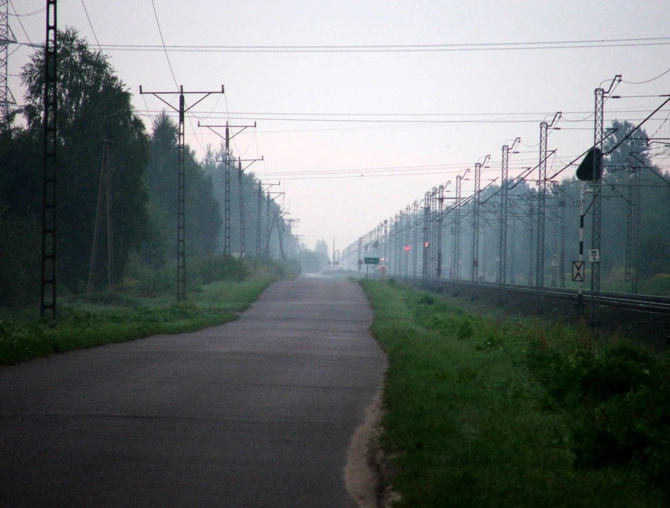 Wzdłuż torów osiągamy Halinów.