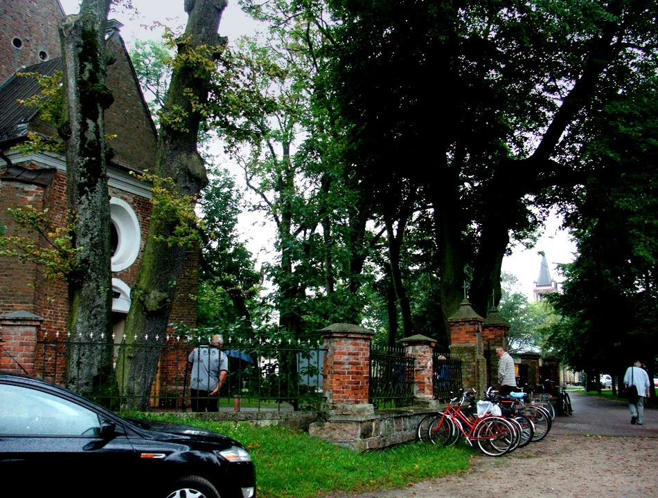 Niedaleko jest kościół rzymsko-katolicki. Widać, że sporo osób przyjeżdża na mszę na rowerach.