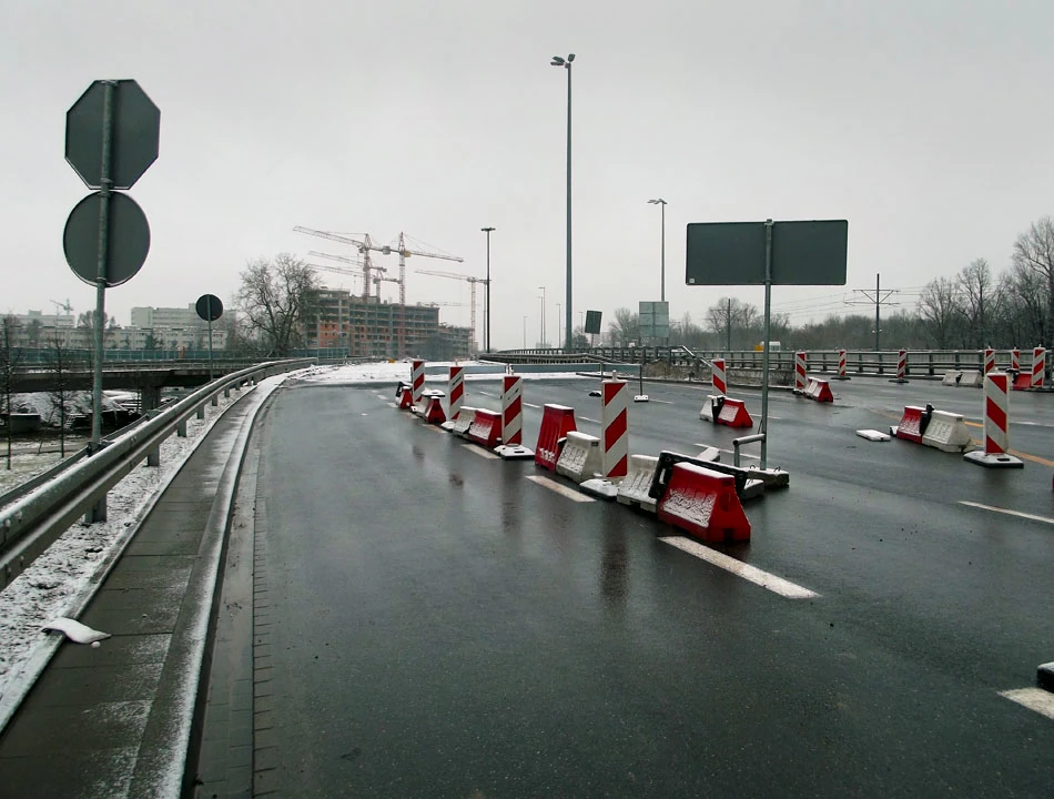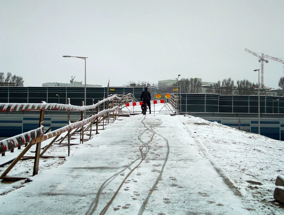 Chcemy przeskoczyć Trasę AK kładką wzdłuż Żelazowskiej, ale kładka zamknięta w związku z remontem Trasy. Pewnie mieszkańcy muszą kląć, bo zabrano im dogodne dojście do dużego węzła komunikacyjnego ze stacją metra i tramwajami.