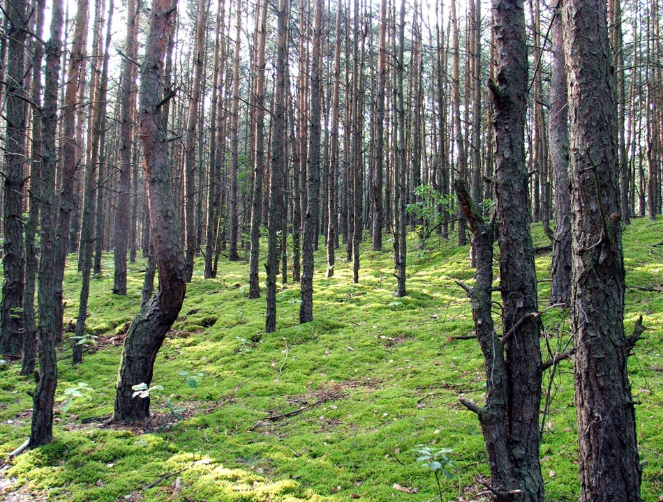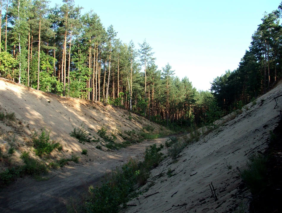 Tuż przed drogą 631 podziwiamy wydmy rozcięte drogą pożarową.