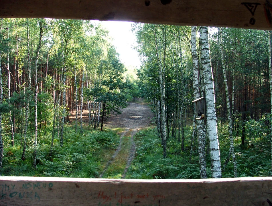 Po przecięciu drogi 631, chwilę jedziemy równolegle do niej i skręcamy w Gościniec. A przed Gościńcem, Marcin wspina się na ambonę i lustruje okolicę.