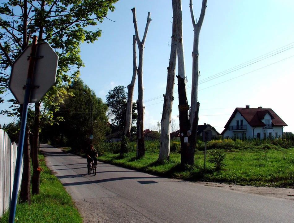 Wyszkowską i Kroczewską dojeżdżamy do Zdziarskiej, która w tym miejscu tylko na mapie jest ulicą — my poznajemy ją jako ścieżynę w lesie. Grunwaldzką dojeżdżamy do Sienkiewicza. Tu cywilizacja objawia się nam oznakowaniem szlaków rowerowych, licznymi kapliczkami i wyasfaltowaną ulicą.