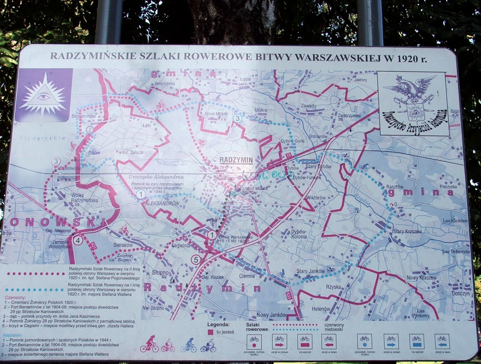 Nawet mapa szlaków rowerowych ma związek z Bitwą Warszawską.