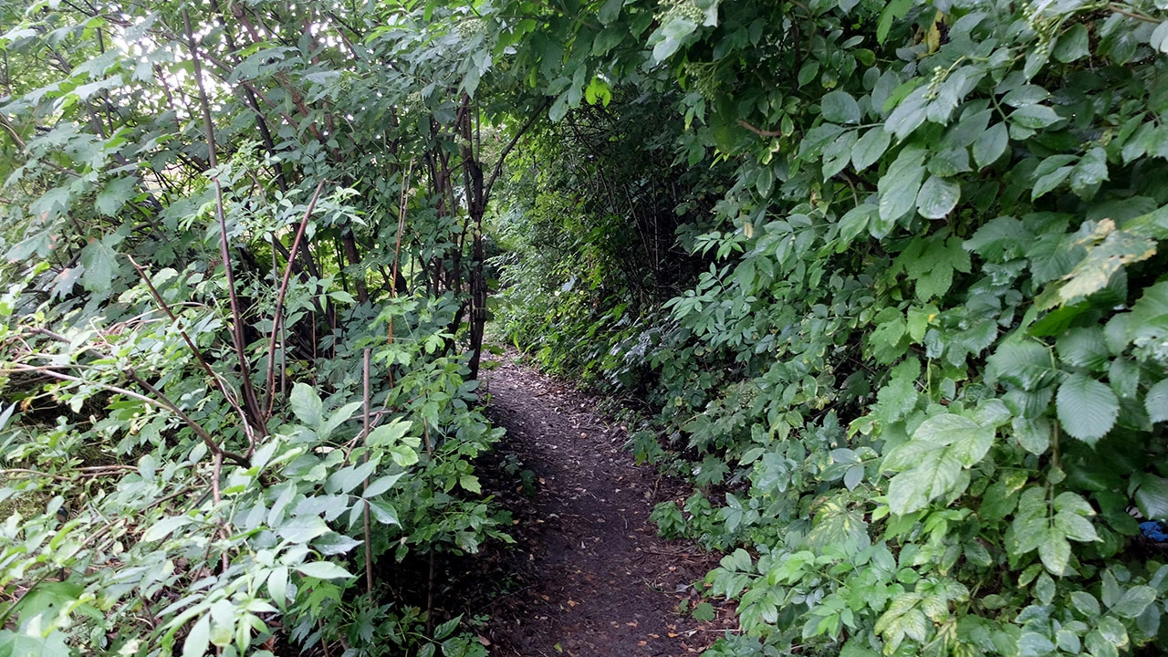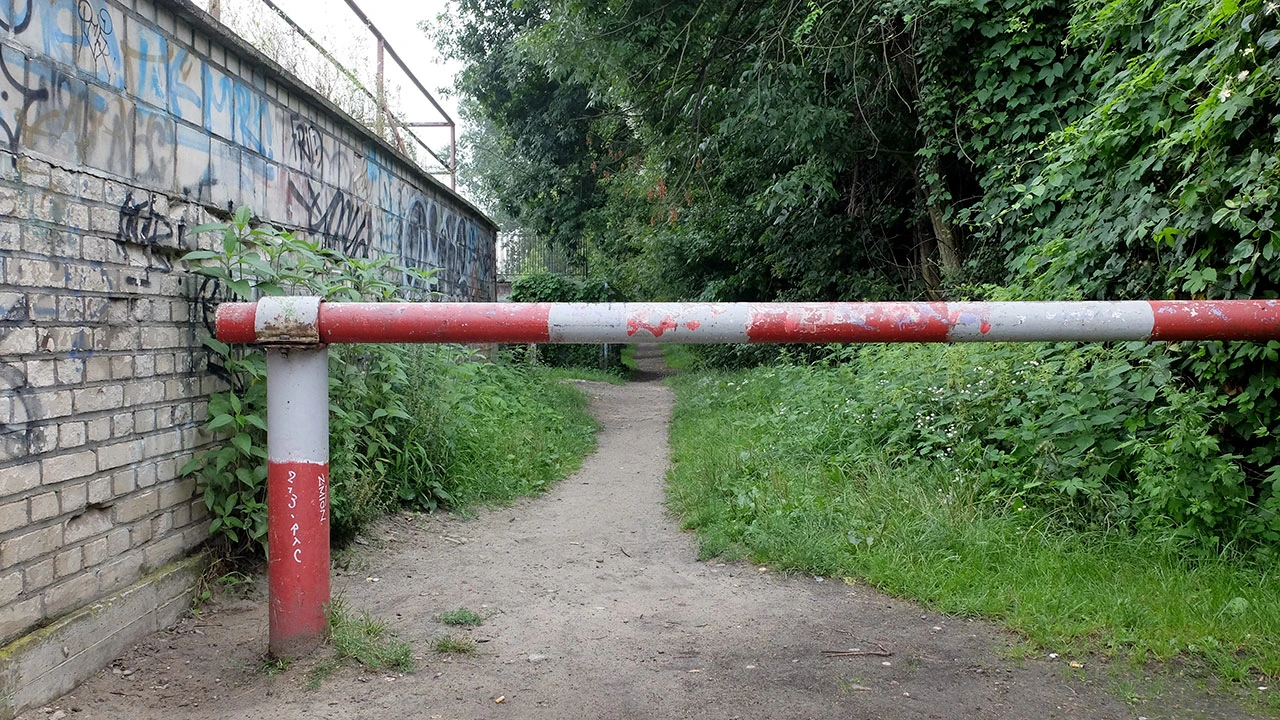 Jedziemy Chrzanowskiego, by po chwili trafić na wojskowy szpital na Szaserów. Skręcamy zatem w Wiatraczną i wzdłuż szpitalnego płotu jedziemy w stronę torów. Na mapie, wzdłuż torów, biegnie Makowska. Jednak w realu ma ona postać wydeptanej ścieżki. A potem tunelu pośród krzaczorów. I tak zaraz na początku trafia się nam lekki offroad pośród kolejowego anturażu, bo przecież jedziemy obok torów węzła Olszynki Grochowskiej.