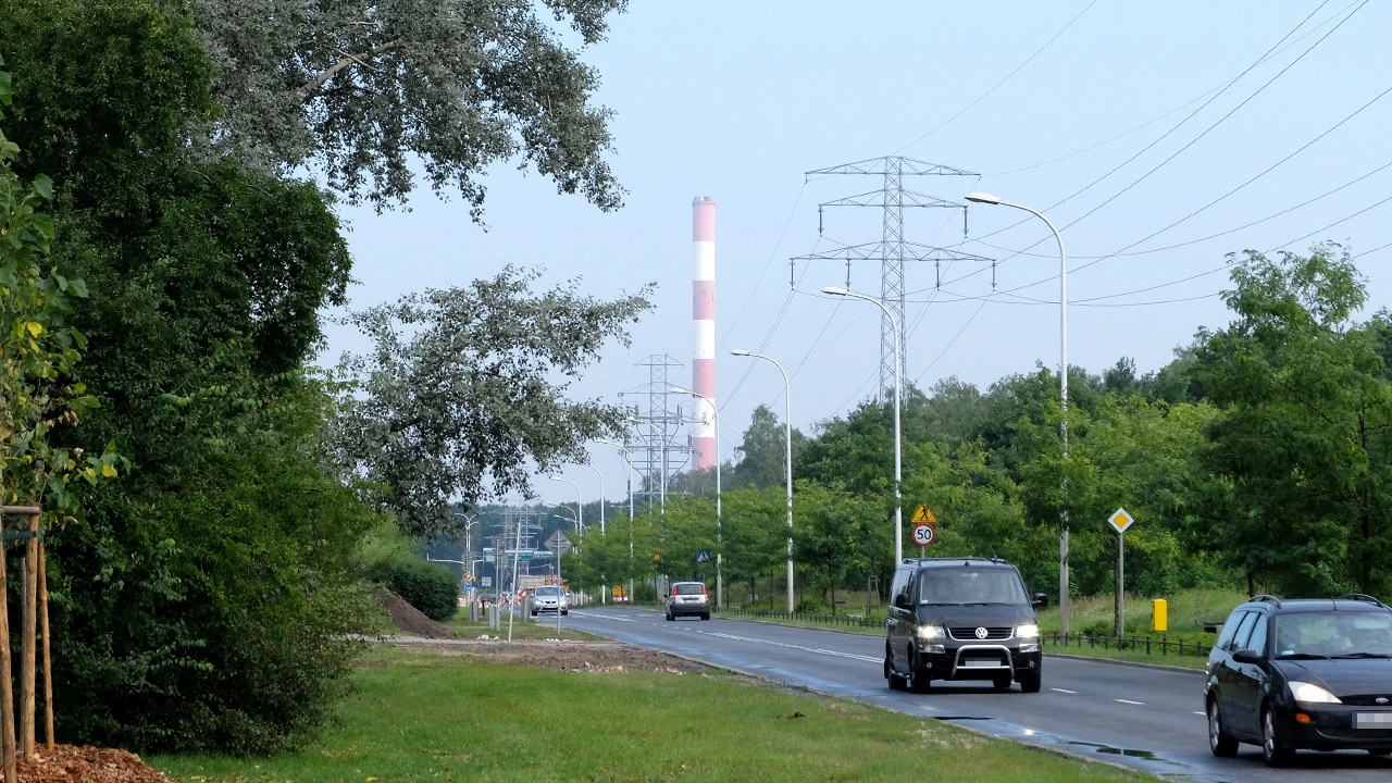 Mijamy też komin Elektrociepłowni Kawęczyn.