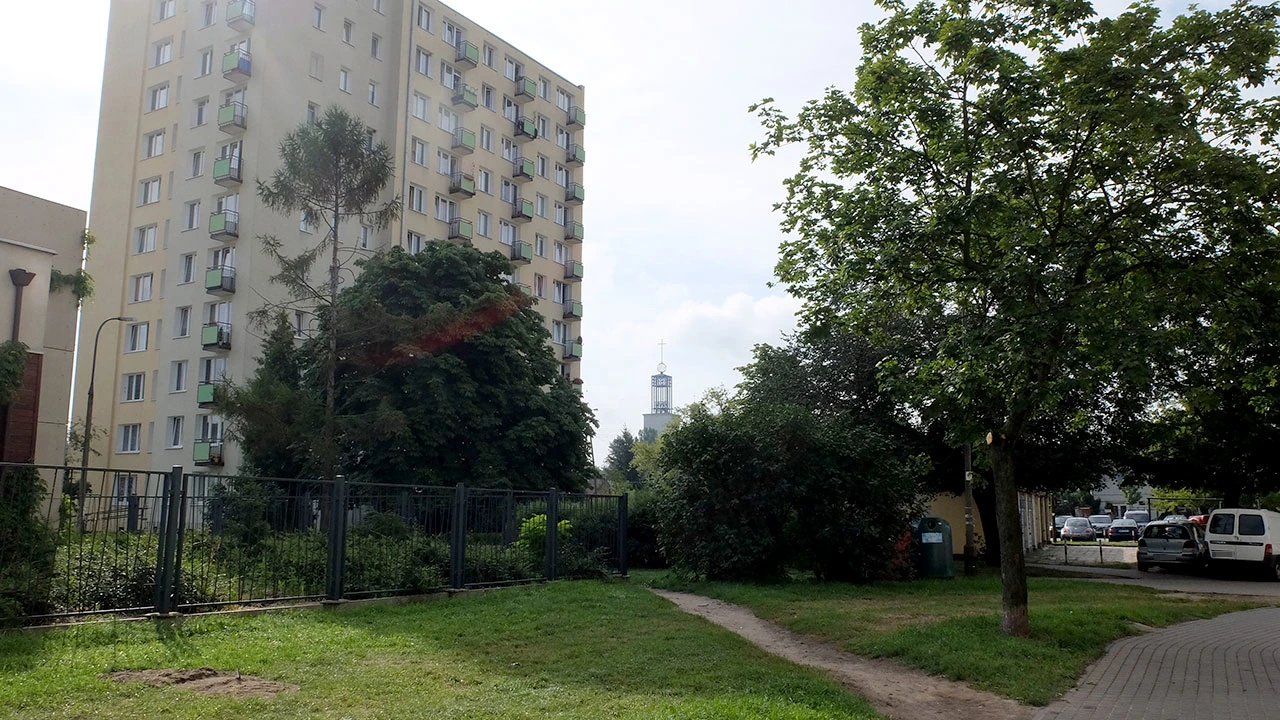 Ulicą Króla Maciusia dojeżdżamy do obiektu sportowego „Syrenka”, który w czasach gdy Piotrek tu mieszkał był po prostu biednym, zapuszczonym boiskiem z małą saneczkową górką.