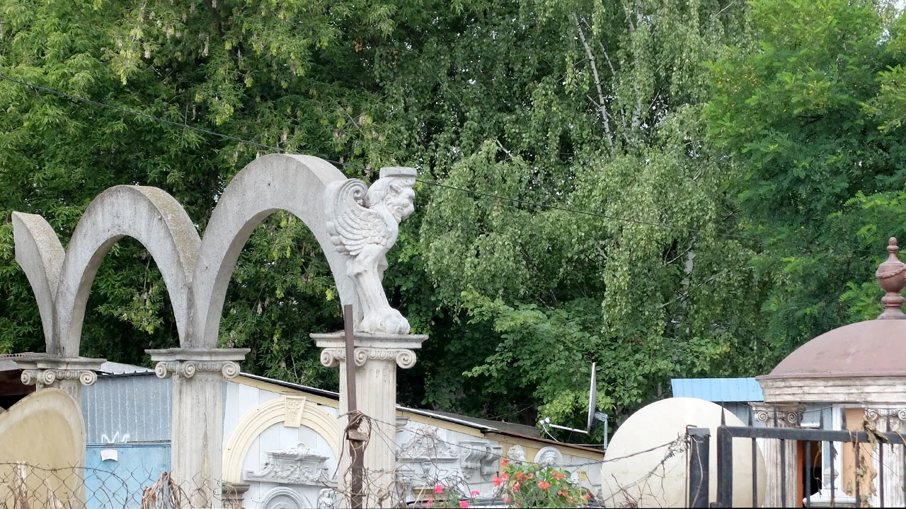 Z Chruściela skręcamy w Paderewskiego i jedziemy w stronę Zielonki. Przy ul. Katiuszy zatrzymuje nas rumowisko okazujące się być zakładem kamieniarskim. Wystawka firmy sprawia wrażenie zaginionego lądu.