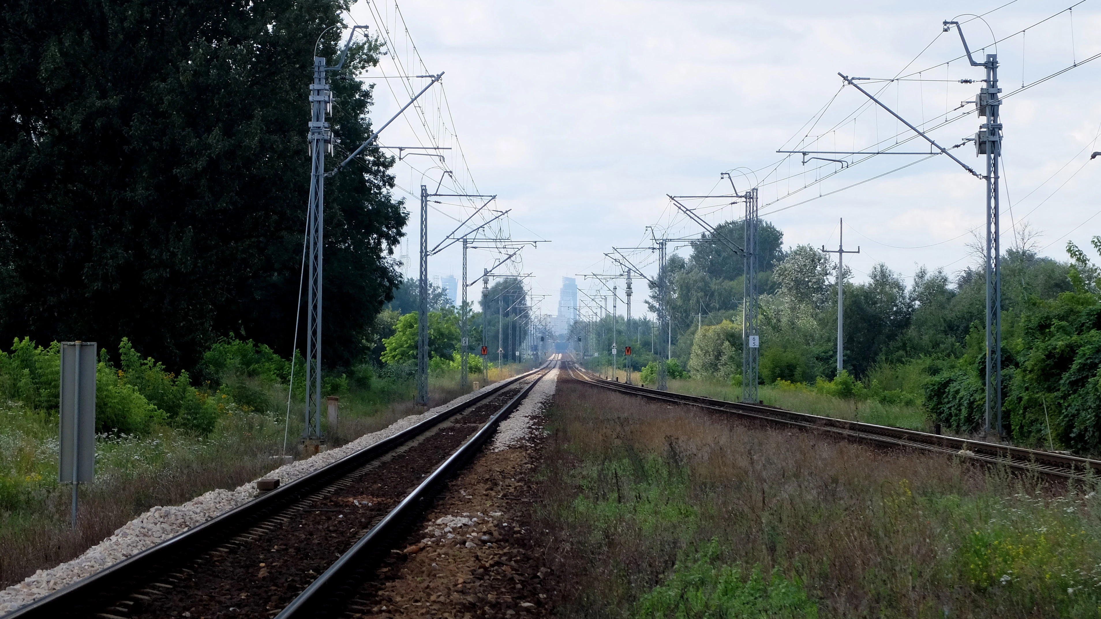 Okrążamy szpital w Drewnicy i w Ząbkach przechodzimy przez tory. Ze stacji widać jak bliziutko jest Warszawa.