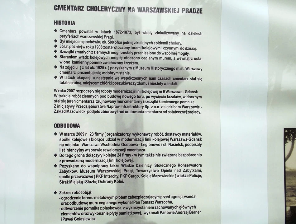 Jest odnowiony i zadbany. Magicznie wygląda to miejsce pochówku ofiar epidemii. Jak bardzo zmieniła się Warszawa — kiedyś cmentarz był co prawda na peryferiach, ale dało się do niego dojechać z terenu miasta. Teraz naokoło są tory, a przecież do Cmentarza Żydowskiego w prostej linii jest pewnie około kilometra. Epidemia cholery, która wybuchła w Warszawie pod koniec XIX wieku, czyli w sumie nie tak dawno, jest przyczynkiem do rozmowy na temat powszechności szczepień dzieci.
