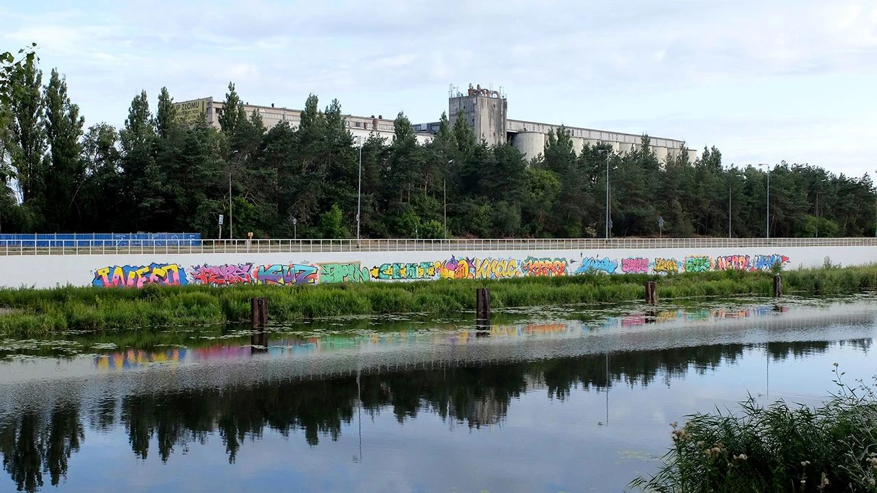 Nad kanałem zawsze jest coś nieoczywistego: budowle, jakieś zbiorniki, malunki.