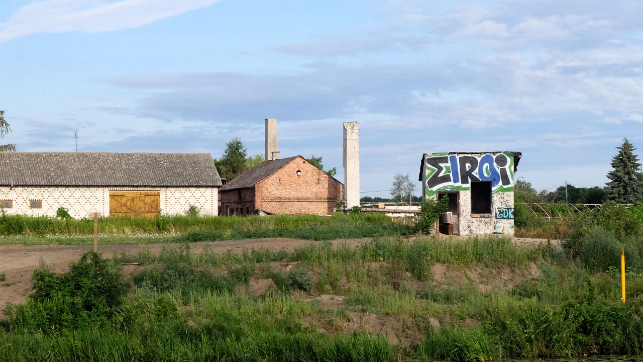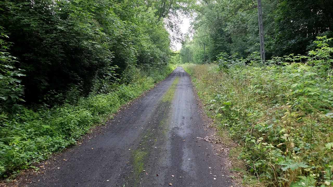 Znajdujemy na drzewie oznaczenie szlaku rowerowego, ale nie wiadomo dokąd prowadzi. Po jakimś czasie droga kończy się na jakimś płocie. Odjeżdżamy od kanału by odbić się znowu od jakiegoś domostwa. Jesteśmy na terenie Osiedla Głogi. Spotkani lokalsi informują, że wzdłuż kanału trwa budowa czegoś, gazociągu?