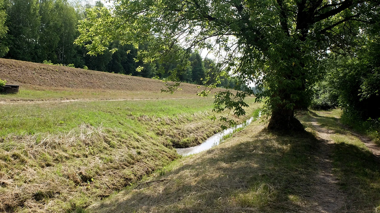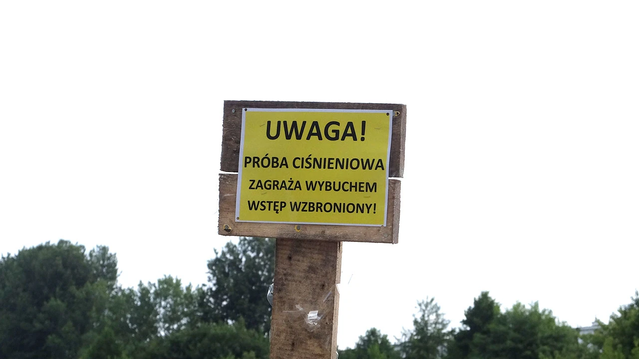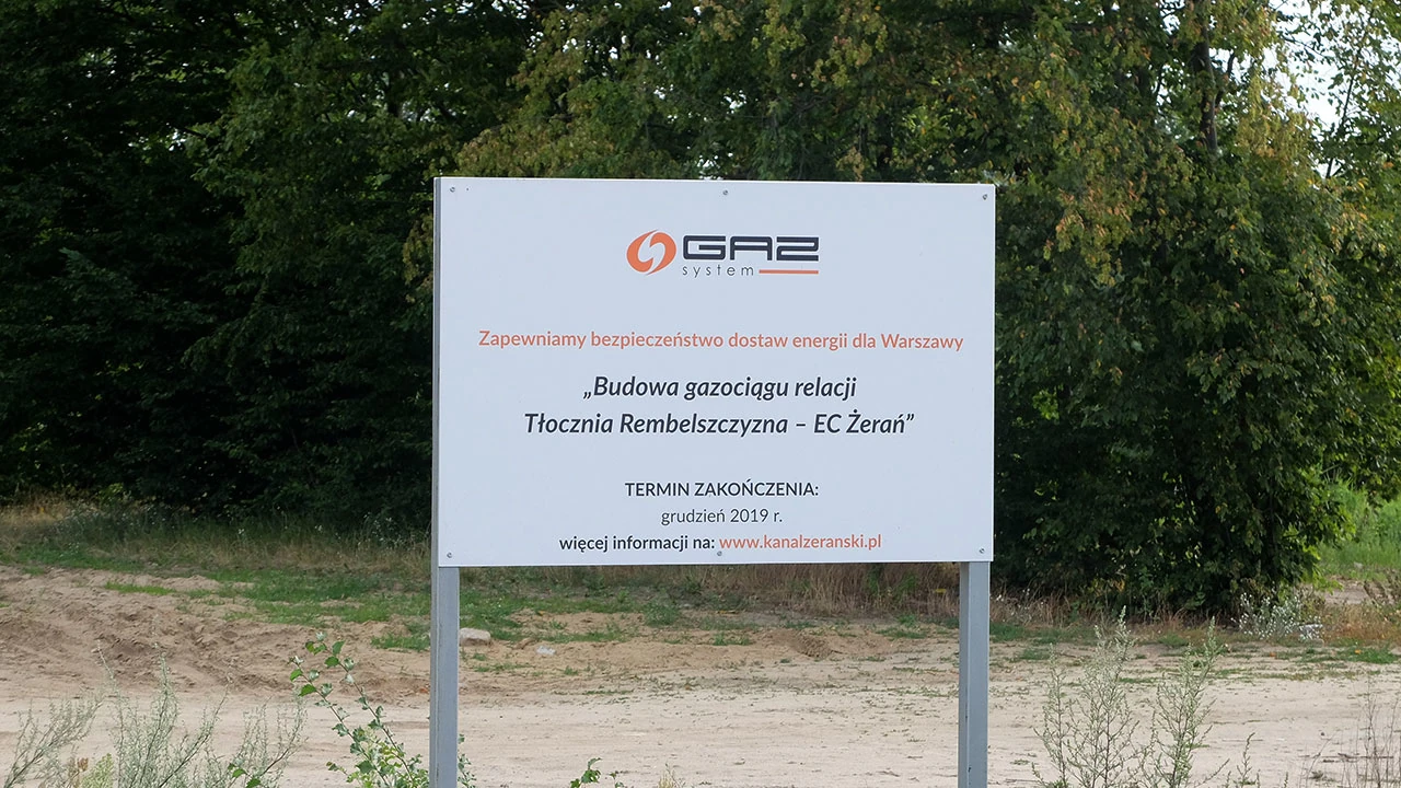 Na wysokości Kobiałki zmieniamy stronę kanału, teraz jedziemy po jego zachodniej stronie. Na brzegu stoi tablica informująca o budowie gazociągu; to jeszcze nie brzmi groźnie.