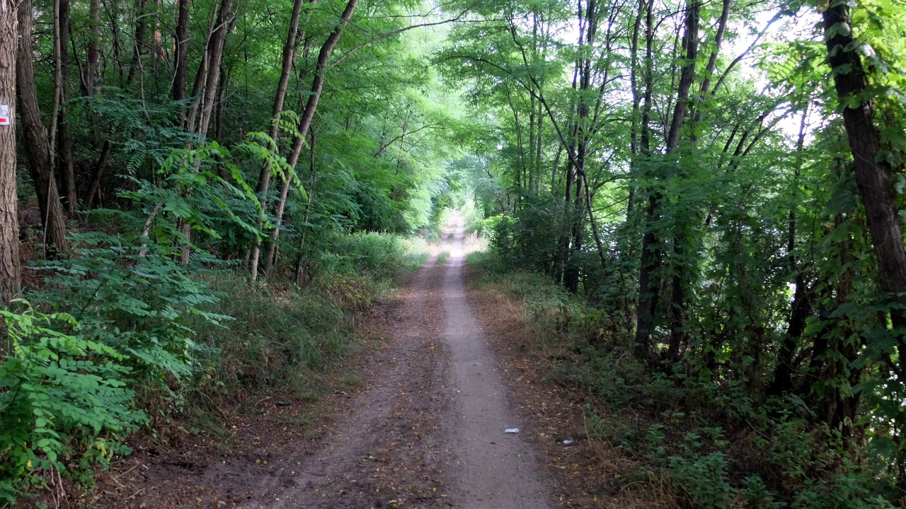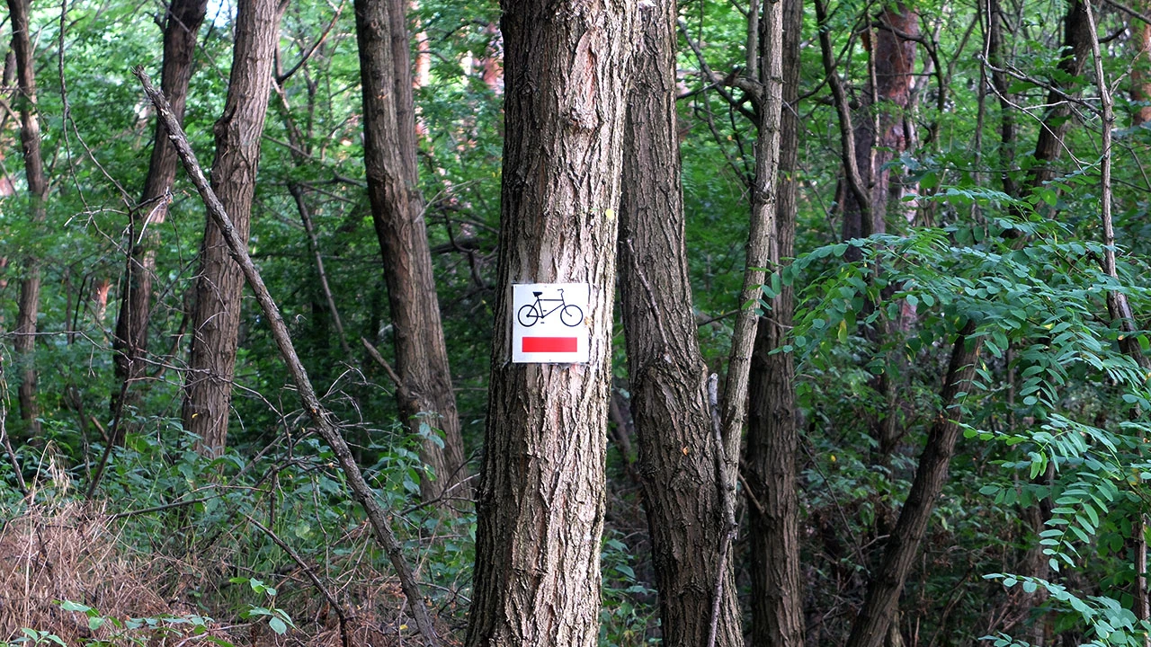Pokonujemy strach, trochę też nie wierzymy w groźby i zostawiamy tablicę za sobą. Poza tym pora już na kawę, a najbliższy lokal o tej porze jest w okolicy Zalewu Zegrzyńskiego. Droga wcale nie jest lepsza. Ścieżynka wije się między krzaczorami.