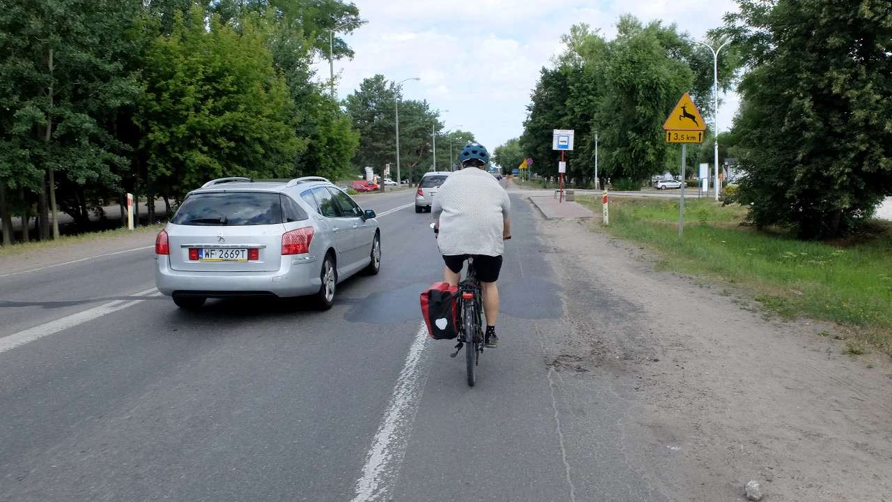 Objeżdżamy Zalew i jedziemy w stronę Wieliszewa. Droga wokół jeziora jest słaba i rowerowo mało przyjemna. Na szczęście ruch jest mały i jazda poboczem jest niezbyt dolegliwa.