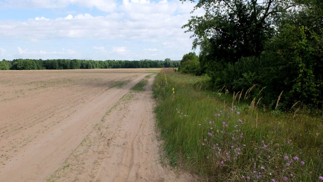 Nie dojeżdżając do Wieliszewa odbijamy w prawo, w stronę Narwi. Trochę w lasek, trochę przez pole i jesteśmy na wale biegnącym wzdłuż Narwi.