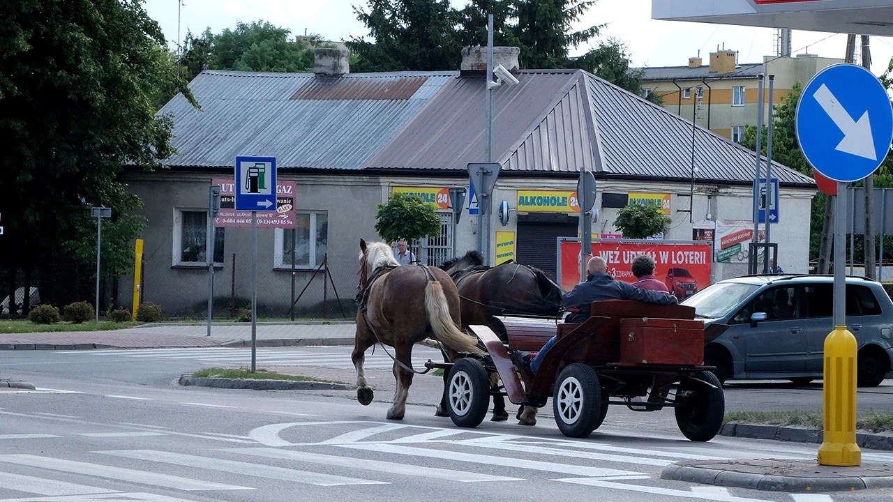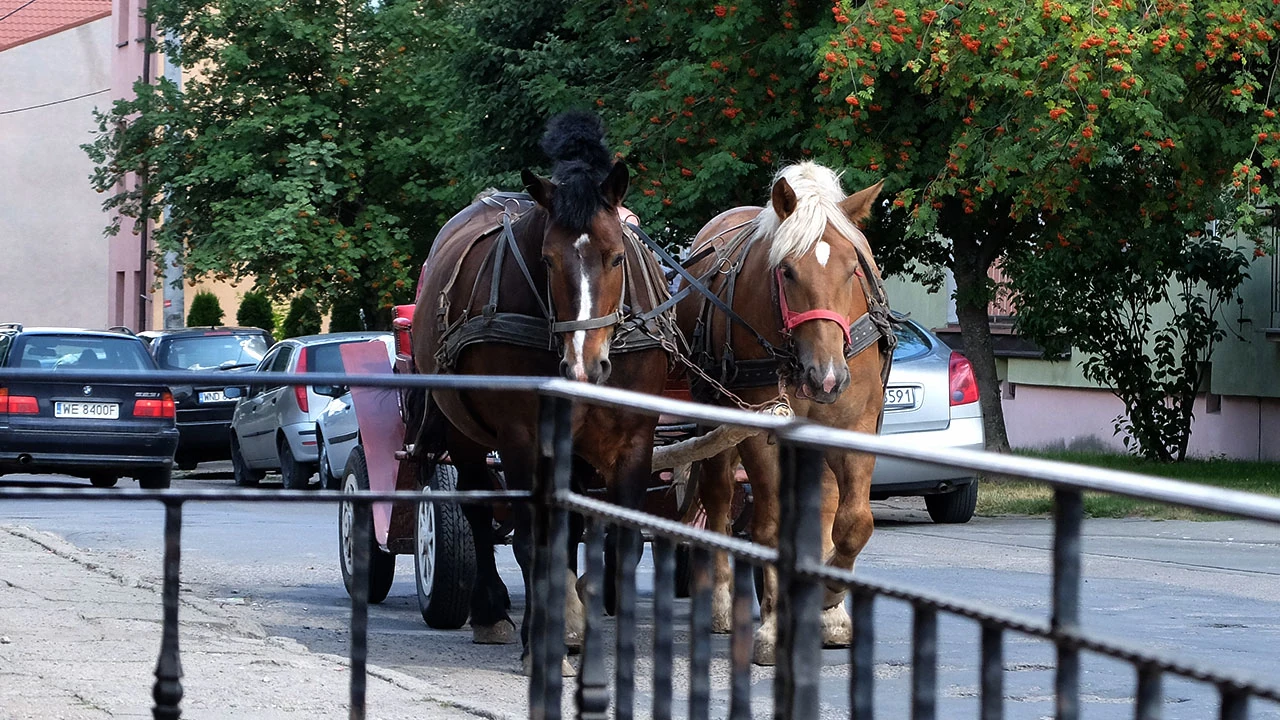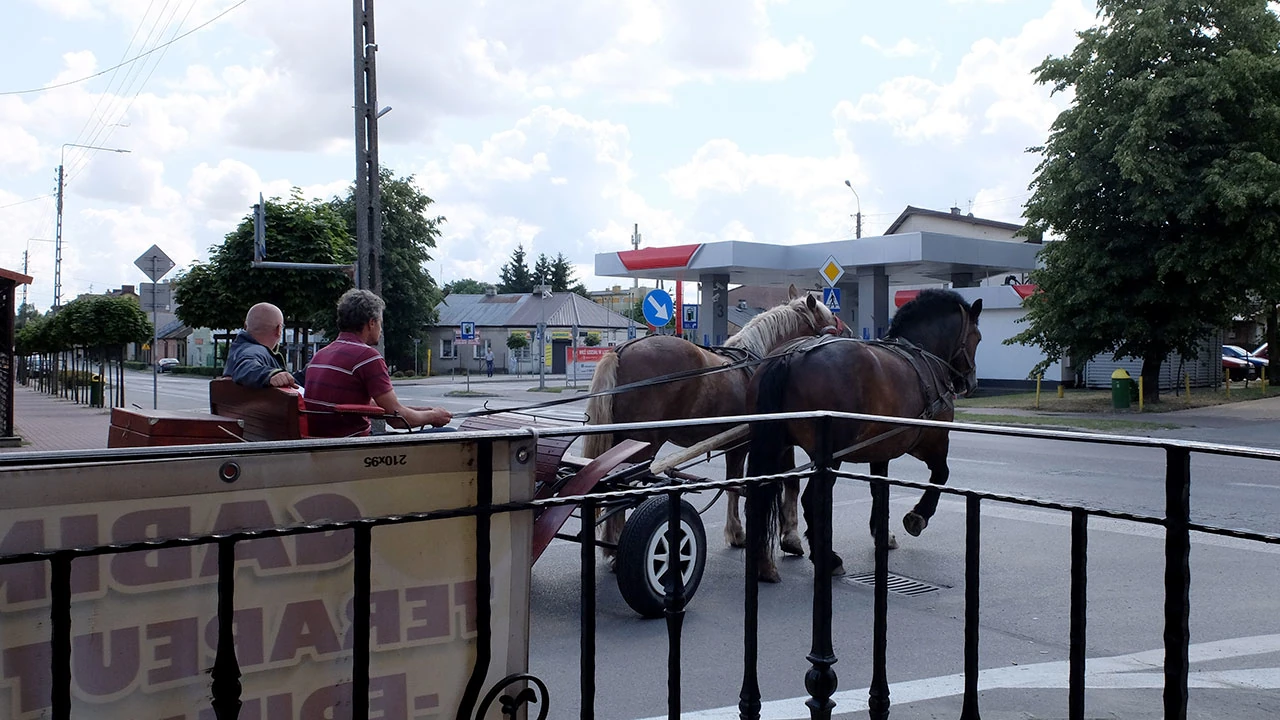 A w Nasielsku przyroda jakby bardziej rozbuchana. Przybiera postać dwóch perszeronów ciągnących dwóch humanoidów.