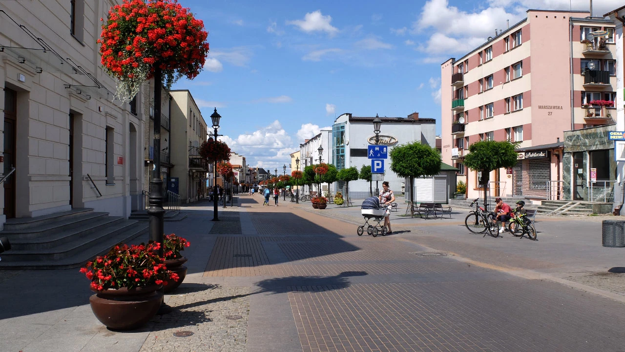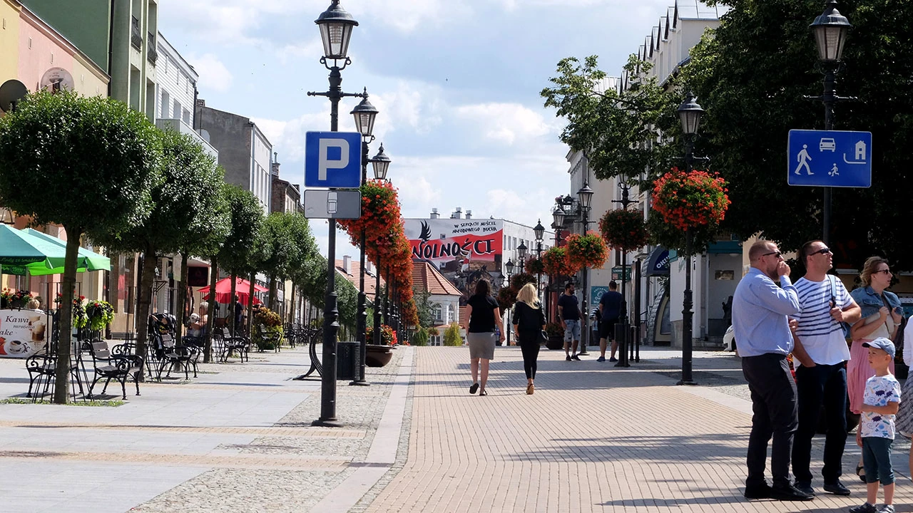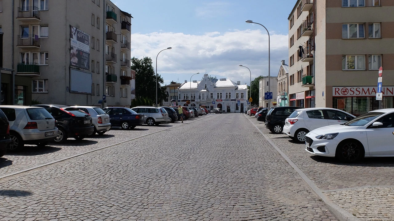 Nowa część — blokowiskowa, ale też, trochę bez składu umieszczone — domy jednorodzinne urodą nie powalają. Dopiero deptak prowadzący w stronę ratusza wrażenia estetyczne trochę poprawia.