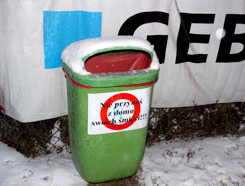 Na ulicznym śmietniku czytamy apel władz Józefowa dotyczący odpowiedzialności za własne śmieci. Najwyraźniej niektórzy mieszkańcy obniżają sobie koszty wywozu nieczystości.