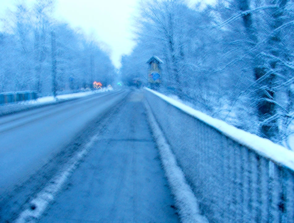 Ulicą 3 Maja dojeżdżamy do Jarosławskiej i skręcamy w Marszałka Piłsudskiego. Po przekroczeniu rzeki Świder wjeżdżamy do Otwocka. Wszystko w koło mocno ośnieżone, zmrożone i jakby spowolnione. Nasz aparat fotograficzny też jakby mniej ochoczy do pracy.