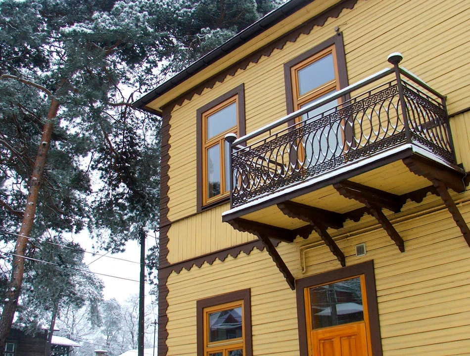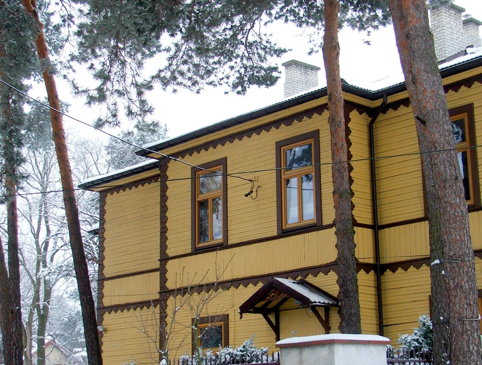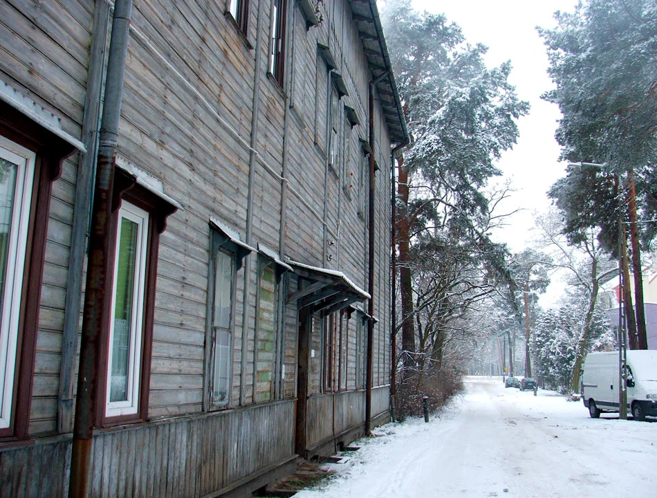 W okolicach dworca mijamy stary drewniak; mimo że skromny, to też świdermajer.