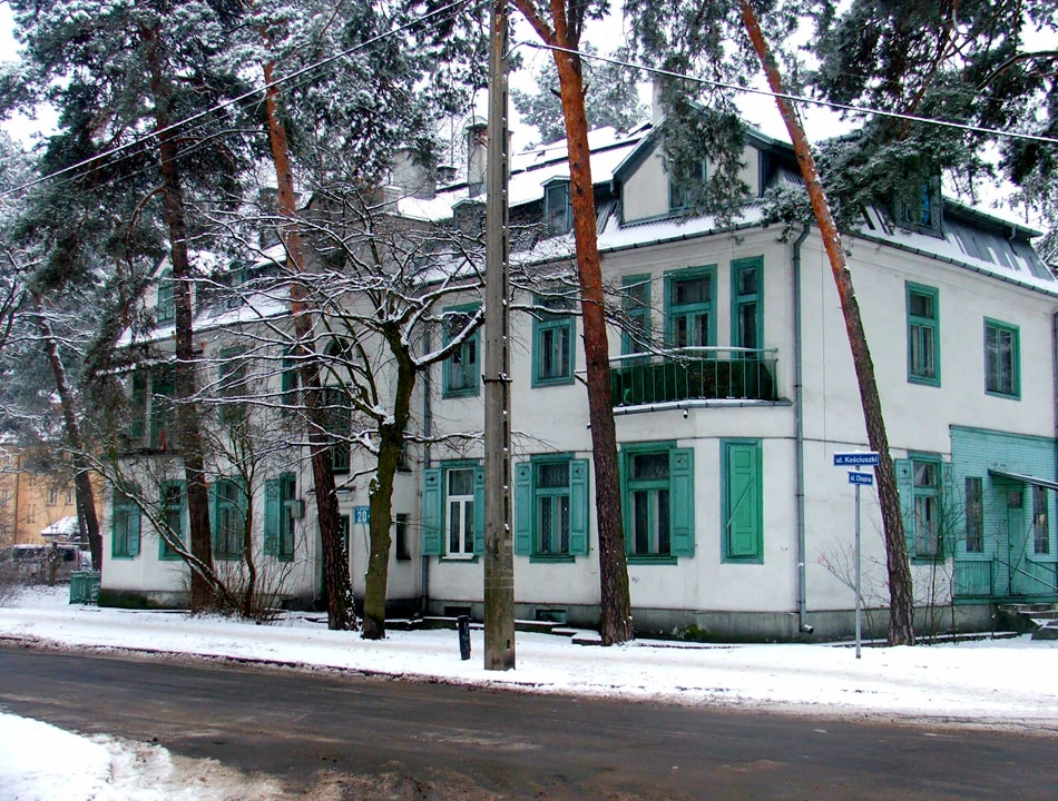 Warszawską dojeżdżamy do Willowej, a potem do Kościuszki. Przy Willowej 6 napotykamy kolejny ciekawy budynek. Mieścił się tu pensjonat Otłuskiego, Tu też widać tylko wspomnienie świetności. Pięknie odeskowany dom, przeszklona weranda, no i ta wielkość.