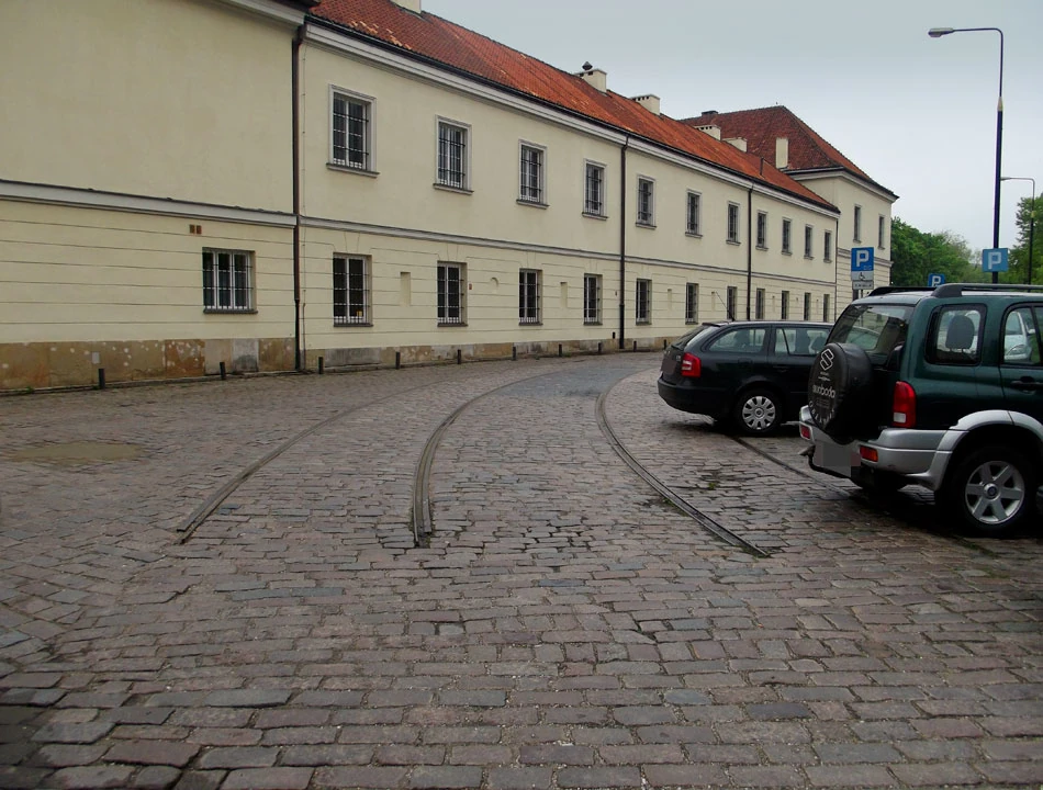 Za wiaduktem Trasy W-Z wjeżdżamy na Miodową kontrapasem na Kapucyńskiej i przez Plac Teatralny dojeżdżamy do Bielańskiej. Chwilę przyglądamy się ruinom banku, od którego nazwę wziął pobliski plac. Kiedyś w odbudowanej części miało mieścić się muzeum Powstania Warszawskiego. Obok ruin pobudowano wielki biurowiec, ale jest tak brzydki, że nie zamierzamy go uwieczniać.