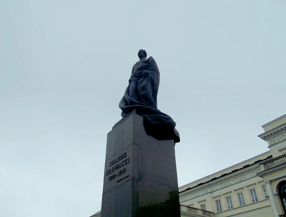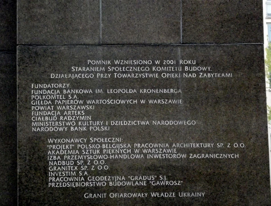 Wracamy na Plac Bankowy, pod pomnik Słowackiego. Kiedyś na tym samym cokole stał inny Polak, patron nazwy placu i Czeka (dla tych co nie pamiętają co to: Всероссийская чрезвычайная комиссия по борьбе с контрреволюцией, спекуляцией и преступлениям по олжности; Wszechrosyjska Komisja Nadzwyczajna do Walki z Kontrrewolucją, Spekulacją i Nadużyciami Władzy). Obaj z Marcinem pamiętamy jak dźwig podnosił Żelaznego Feliksa i jak ten stracił głowę. Na cokole nie ma jednak wzmianki o tych wydarzeniach, jest za to informacja kto podarował granit na pomnik.