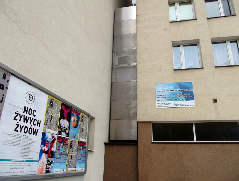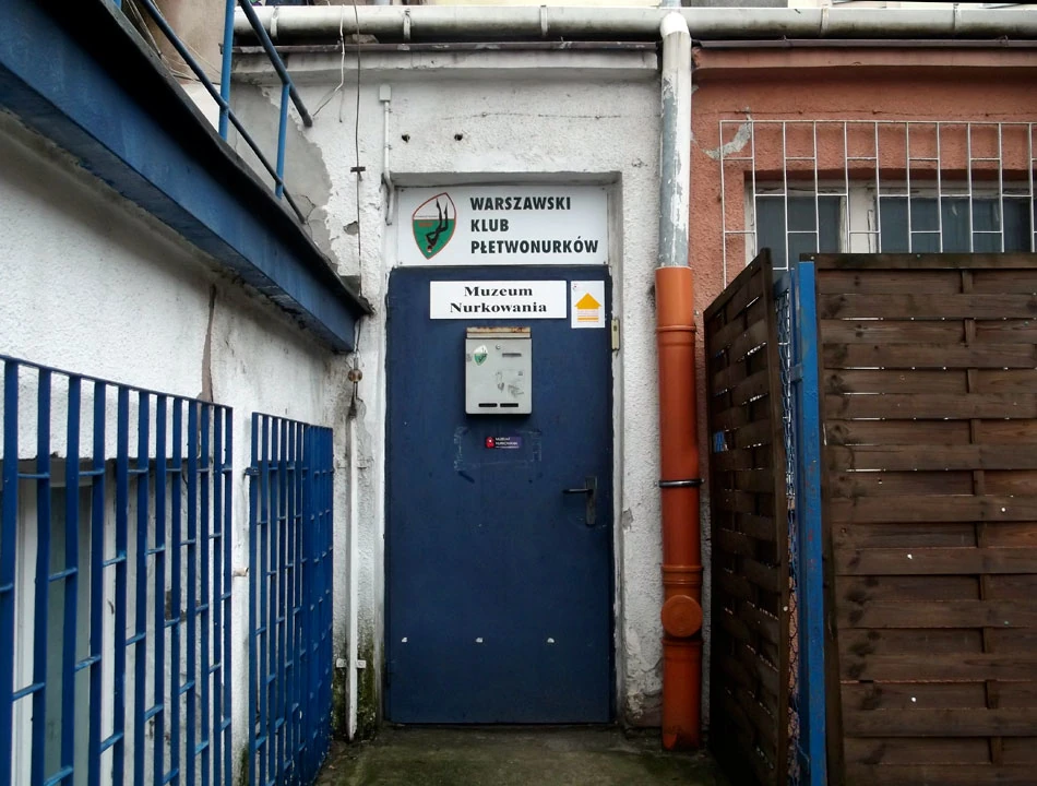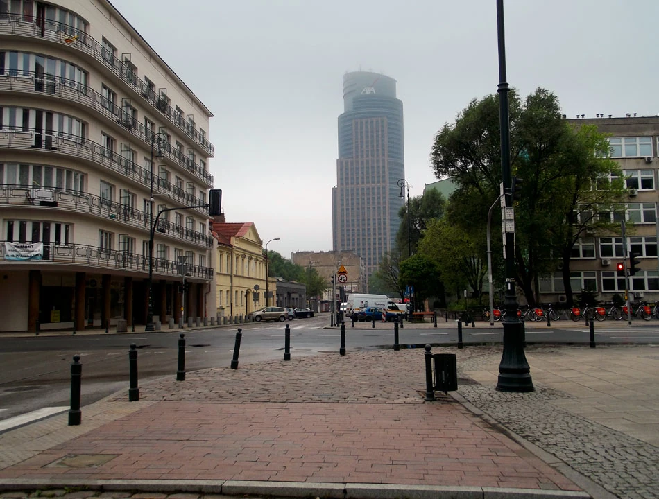 Jedziemy Grzybowską i Przyokopową i w pobliżu Muzeum Powstania Warszawskiego trafiamy na Muzeum Nurkowania. A wieżowiec znowu jest wszędzie.