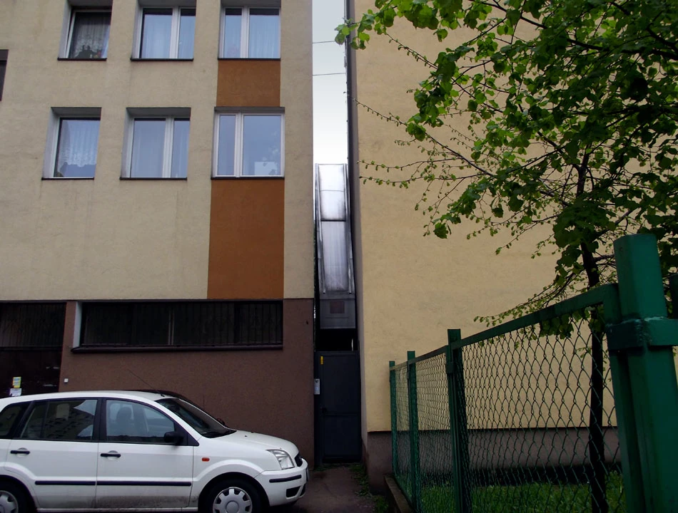 Dosłownie obok jest dom izraelskiego poety Etgara Kereta – rodzaj instalacji w postaci mikroskopijnego domu wciśniętego między dwa budynki.
