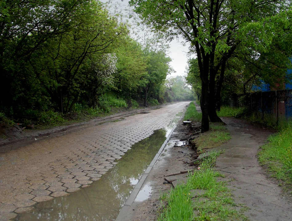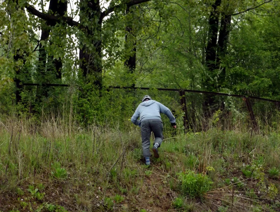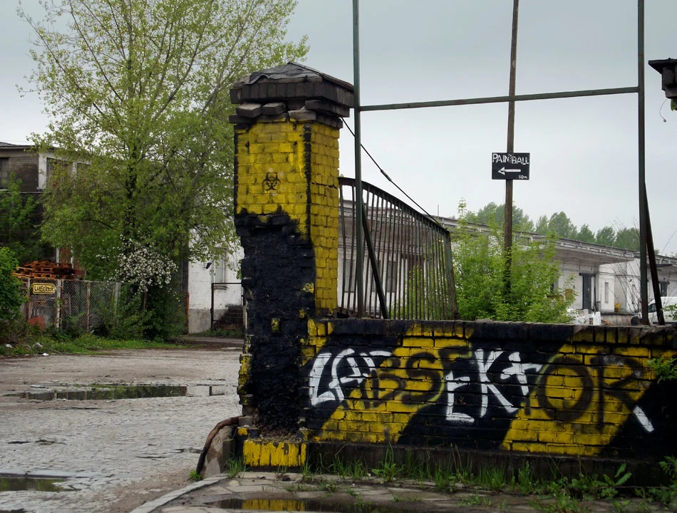 Zapędzamy się asfaltową alejką o niespodziewanie dobrej nawierzchni. Ale to droga donikąd, szukamy przejścia przez płoty i krzaki, jednak nic z tego — zawracamy.