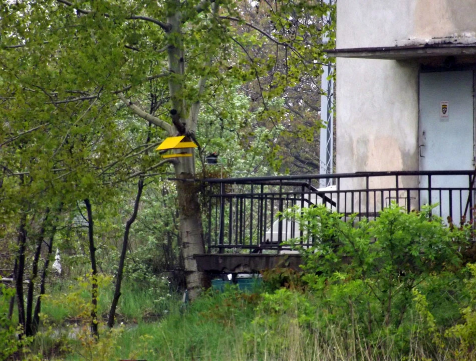 W okolicy zdominowanej przez rdzę trafiają się niespodziewane kolory. Czasem to kolejna spalinówka, a kiedy indziej karmnik przy schronisku manewrowych.