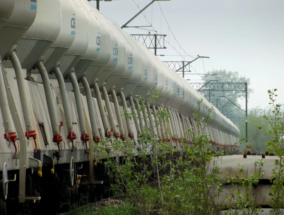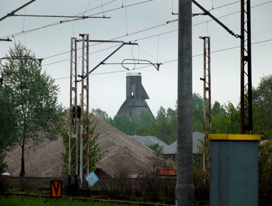 Nagle nad horyzontem wyrasta betonowa budowla – wygląda jak gigantyczna rzeźba. Obok rząd wagonów do przewozu cementu tworzy kolejne dzieło sztuki. Zamarły nabierak koparki też przypomina artystyczną instalację.