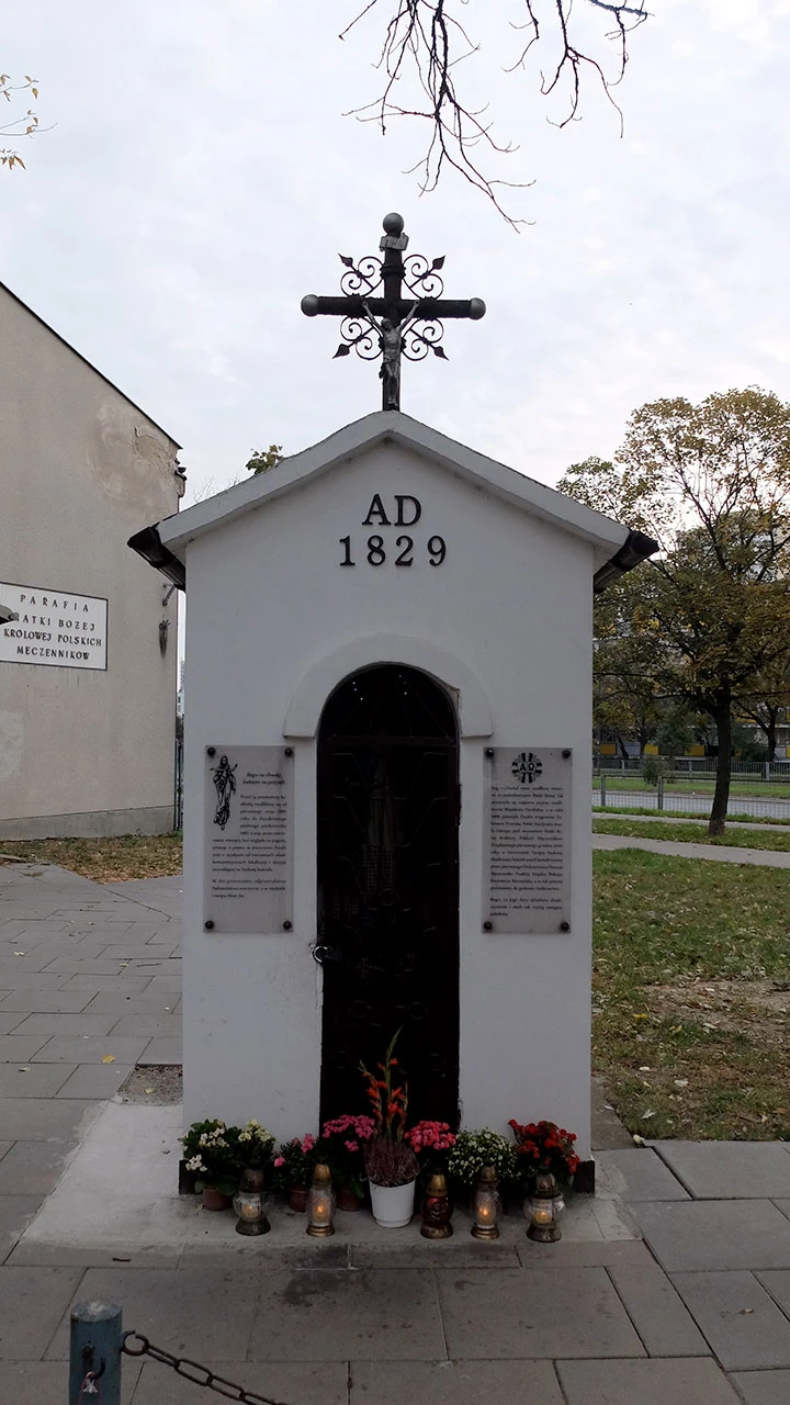 Sto razy przejeżdżaliśmy obok tej kapliczki na Międzyborskiej. Coś nas dzisiaj podkusiło by się zatrzymać. I spadła na nas wrażeń moc. Po pierwsze iluminacja. Po drugie jakie powstanie było w 1829 roku. Po trzecie zadziwieni jesteśmy wpływem modlitwy na władze komunistyczne. Po czwarte, znaleźliśmy informacje, że w miejscu kapliczki grzebano Polaków poległych podczas bitwy pod Olszynką Grochowską – czyżbyśmy jeździli po cmentarzu?