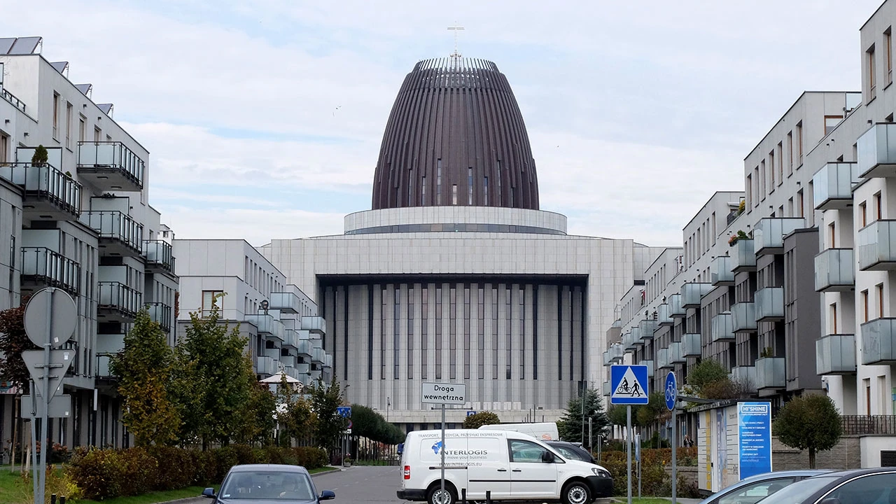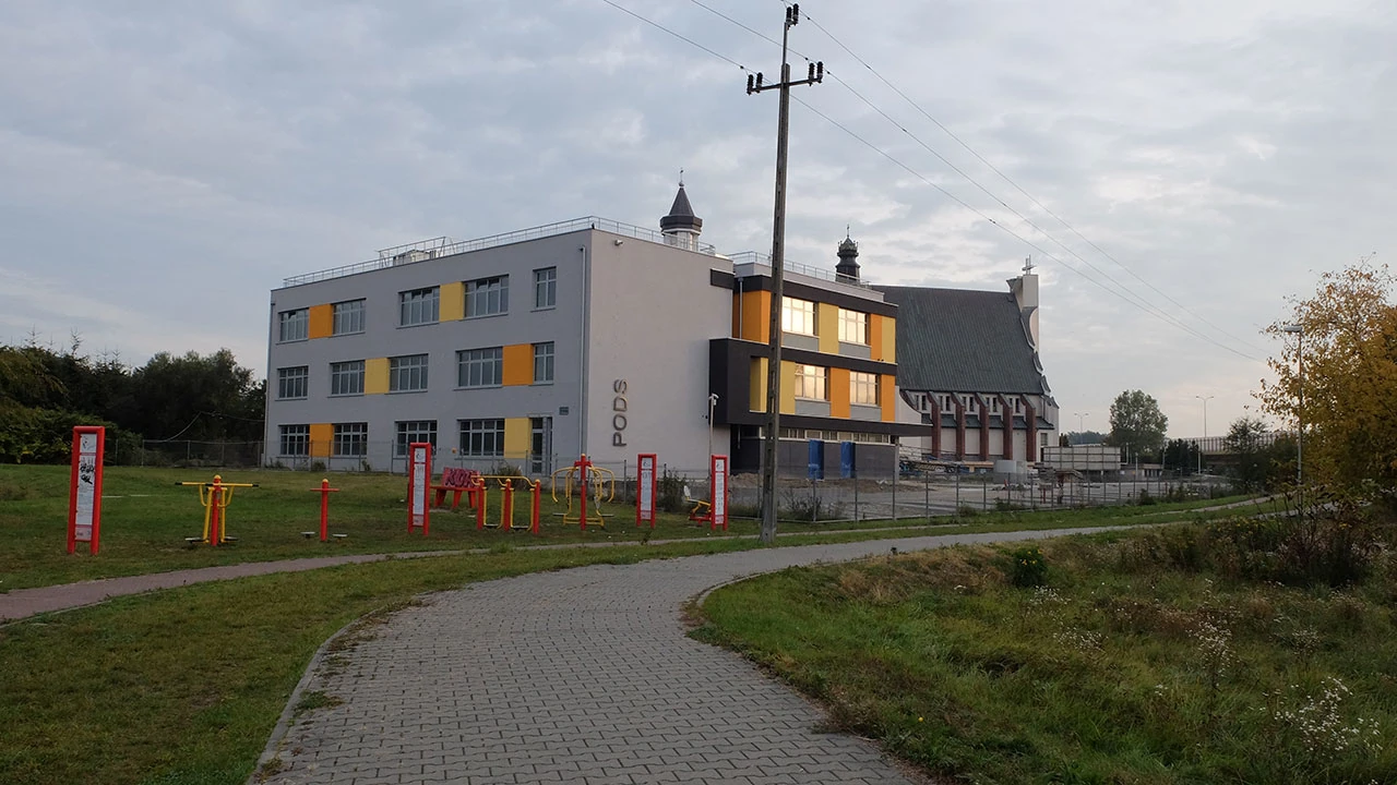 Radość nie trwa długo, bo nadziewamy się na płot okalający gigantyczne wykopy. Nie mamy jak tego ominąć. Po chwili orientujemy się, że to znowu część południowej obwodnicy Warszawy. To ostatnie chwile spokoju w Miasteczku Wilanów. Wreszcie znajdujemy koniec płotu i jedziemy sobie Branickiego, a potem Ledóchowskiej. Infrastruktura całkiem przyzwoita, chociaż co jakiś czas droga nagle się kończy. No i nie ma wątpliwości jaki tu jest najważniejszy budynek.
