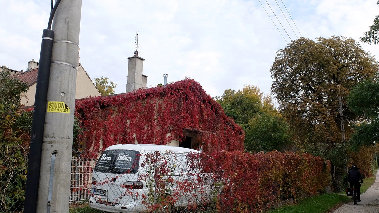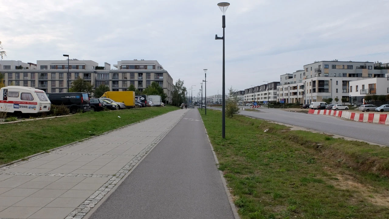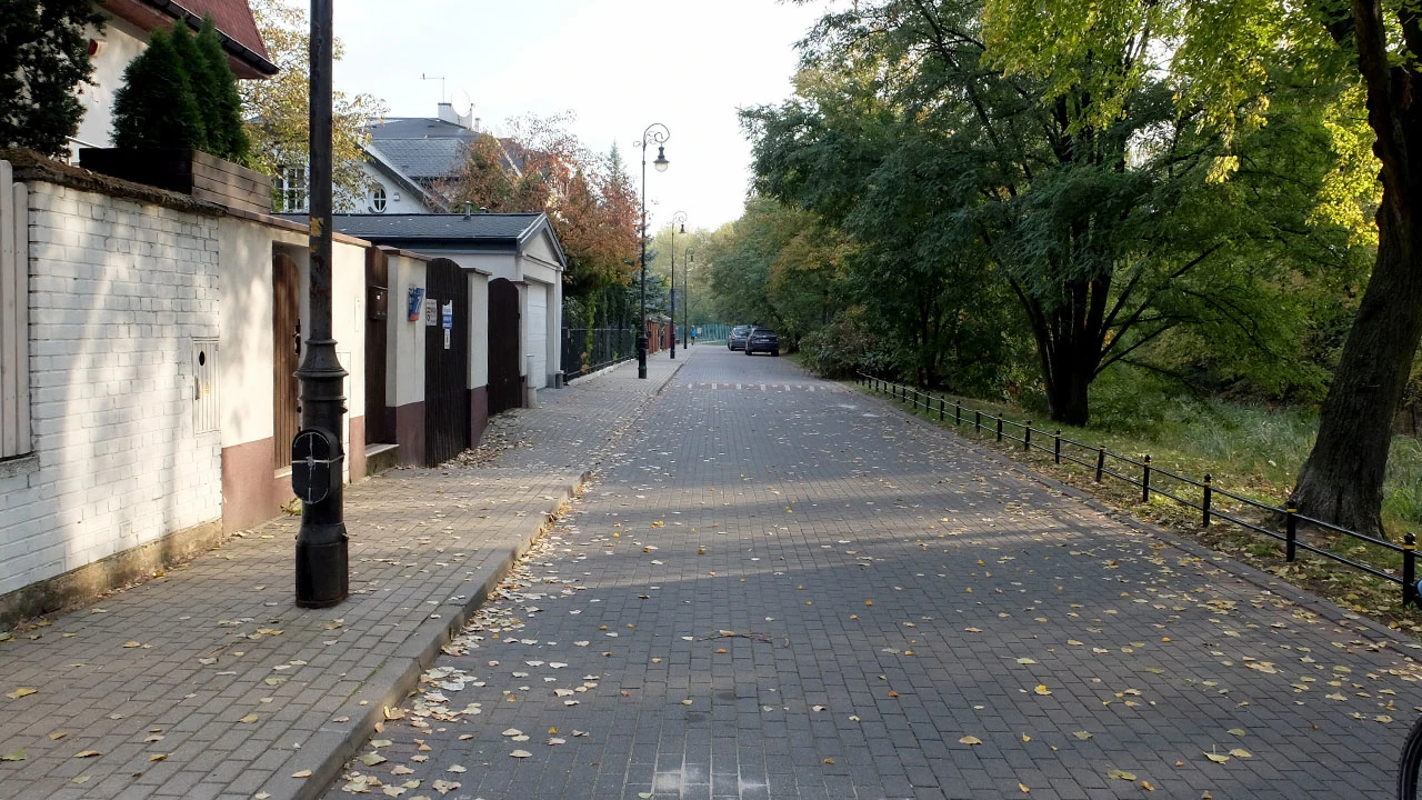 Uciekamy od ruchu i odbijamy od Wiertniczej w stronę Jeziora Wilanowskiego. Tu jest trochę inny Wilanów niż ten znany z okolic pałacu. To mieszanka podmiejskości i zadęcia. Obok wielorodzinnej kamienicy, ktoś stawia domek jednorodzinny na pełnym wypasie.