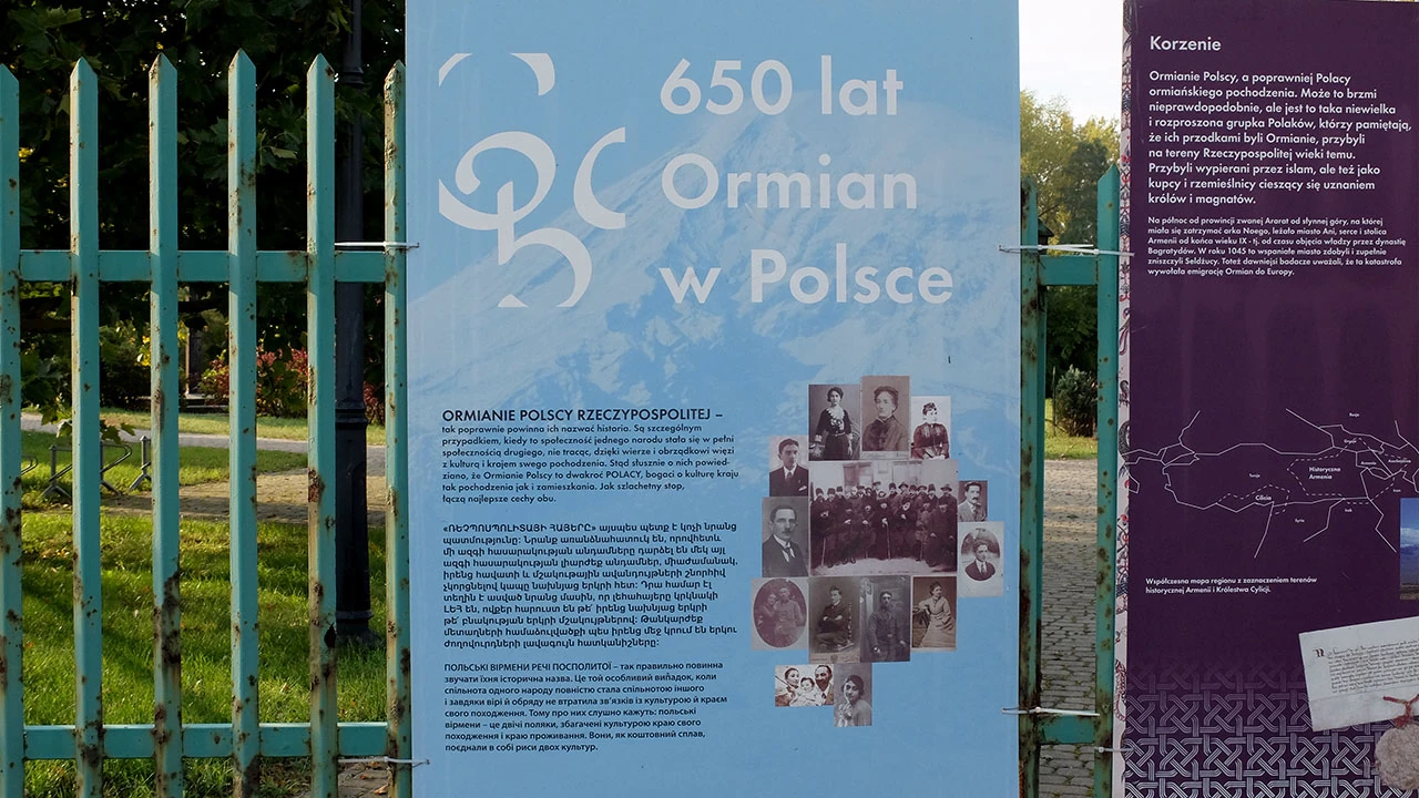 Jest też miejsce by przysiąść, czy wypuścić dzieci „na wybieg”. Można też uzupełnić wiedzę o Ormianach w Polsce.