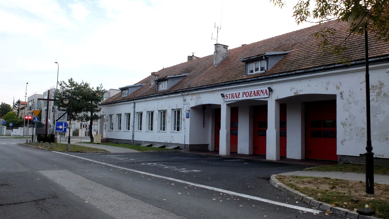 Przy Obornickiej posadowiły się budynki straży pożarnej wyglądającej na wiekowe. Trochę jakby wiejska ta straż, ale w końcu Wilanów kiedyś był wsią.