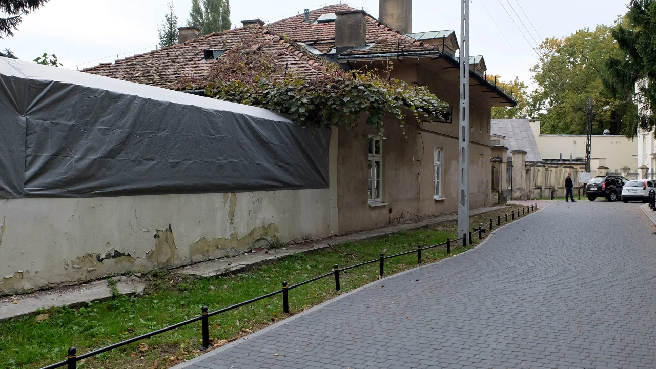 Przecinamy Przyczółkową z nieustępliwym zamiarem odwiedzenia Miasteczka Wilanów. Pokazują nam jakieś objazdy, ale my twardo jedziemy przed siebie, tym bardziej, że droga ładna, brukowana. I ładnie się też kończy. Tyle, że przejazdu dalej nie ma. Pałac w Natolinie stoi dla na zamknięty.
