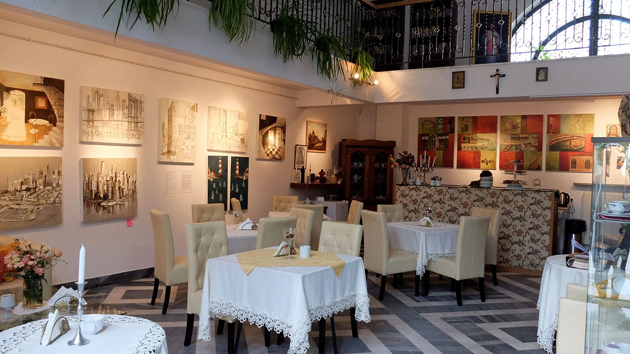Jakoś od tyłu wchodzimy na teren kościoła św. Anny. W dzwonnicy nie marnują miejsca na parę w gwizdek – można napić się tu kawy i zjeść ciacho.