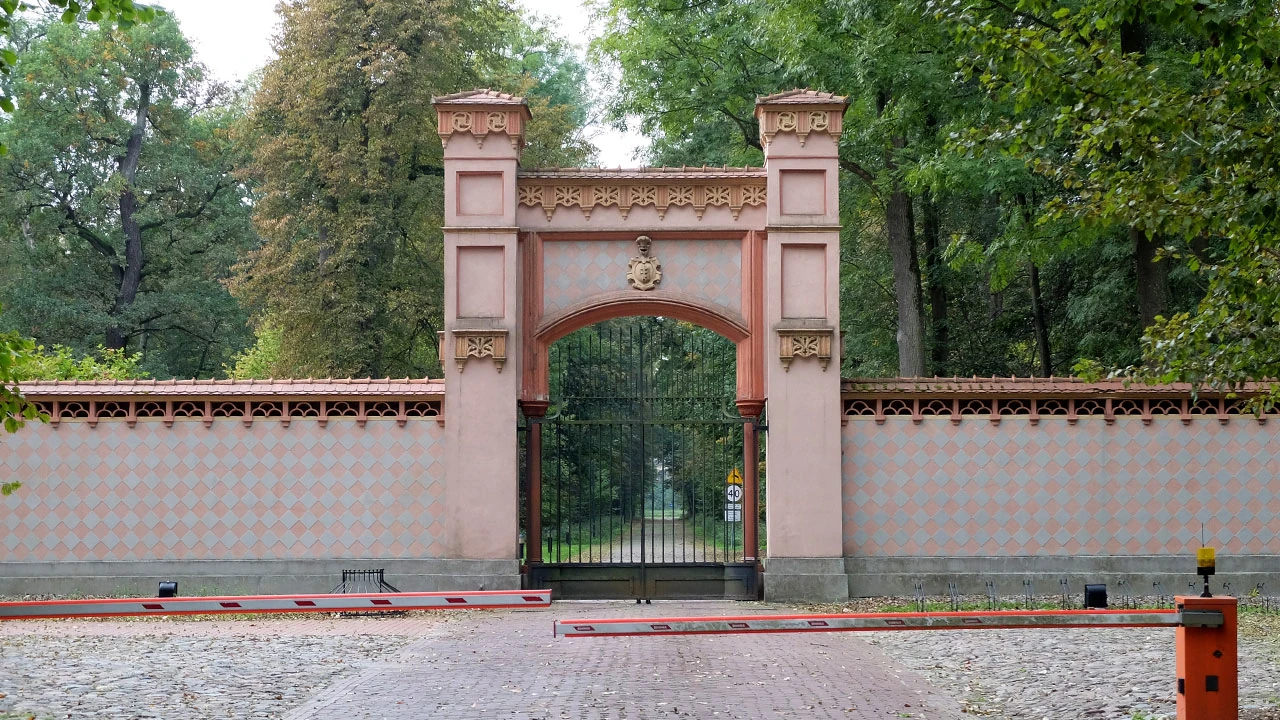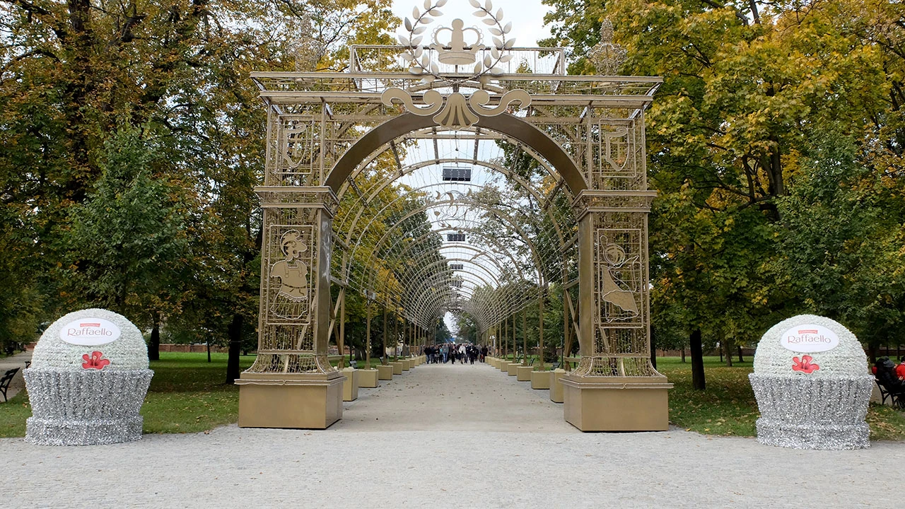 Wprost do pałacu prowadzi aleja zdobna w łuki i bramy, w nocy zapewne iluminowane – klasyczne sponsorskie dziadostwo. Jak to możliwe, że w środku zabytkowego zespołu można postawić takie coś?