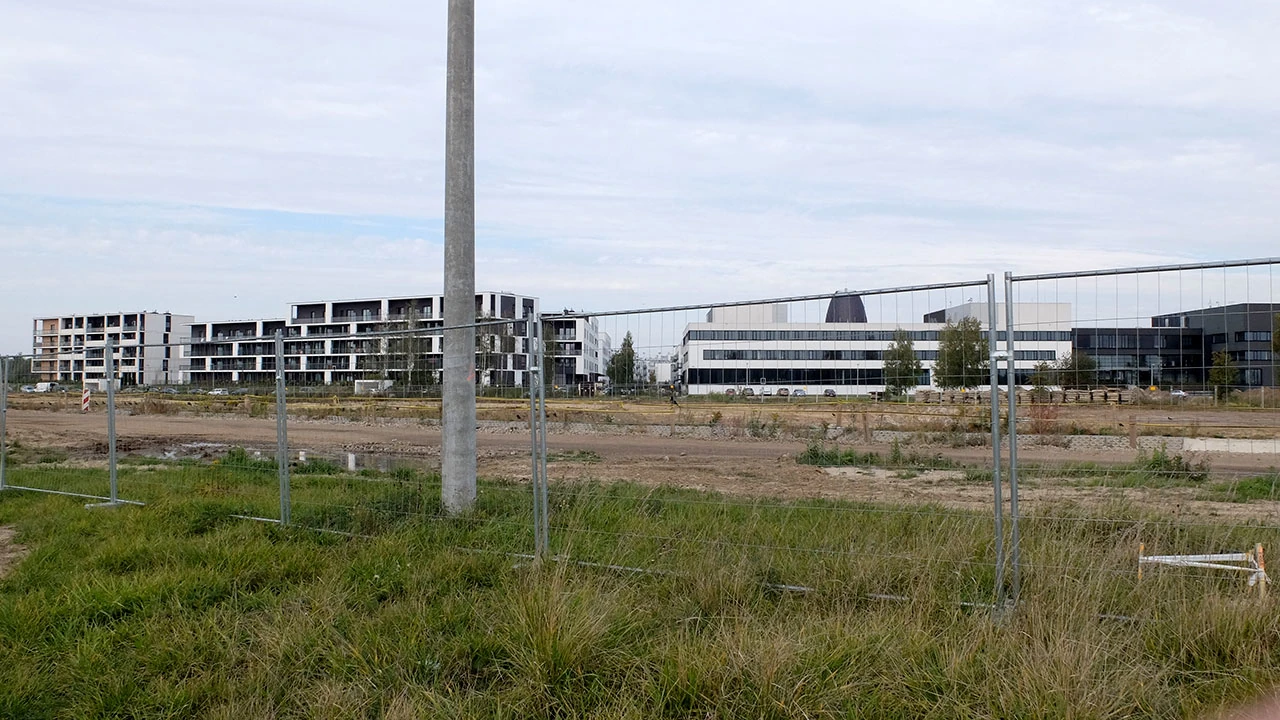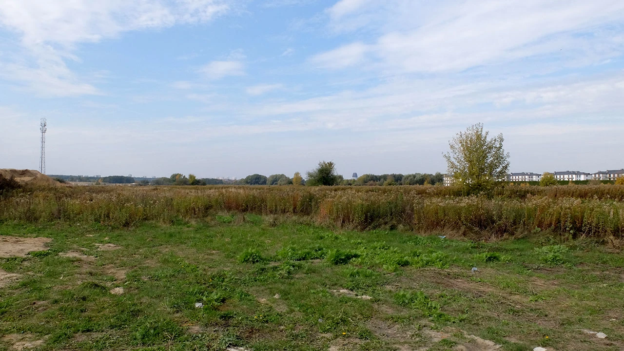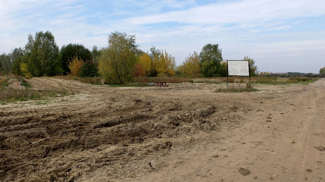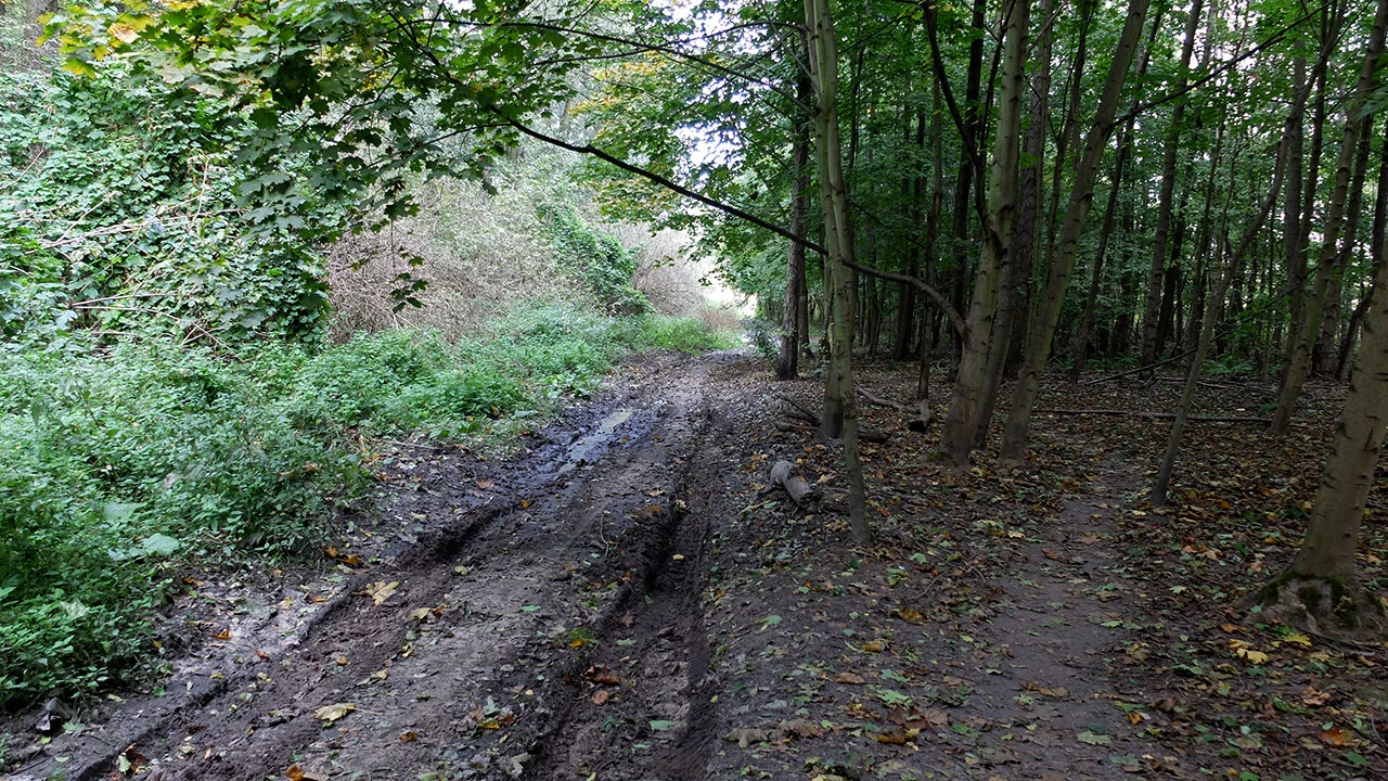 No to my wzdłuż płotu. Trochę błotka, jakieś wykroty, jednak widome znaki wskazują, że trzymamy kierunek na Miasteczko Wilanów.