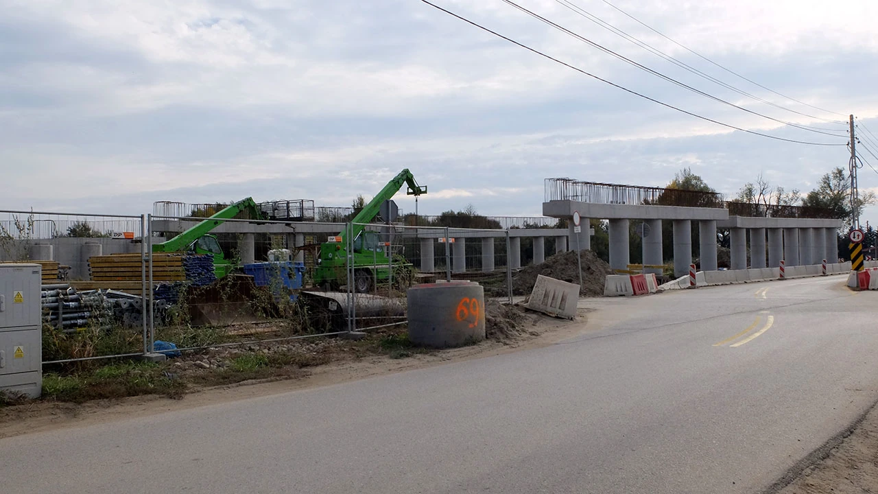 Nie przekraczamy Wilanówki i zakręcamy w Ruczaj. Tu znowu robi się sielsko, ale zaraz, jak obuchem w głowę, poraża nas widok południowej obwodnicy Warszawy. Jeszcze ją budują, ale widać już jakie to bydlę będzie.